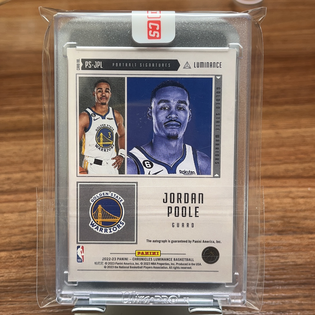 2022-23 Panini Chronicles Jordan Poole 勇士 乔丹 普尔 41/49编 编年史 签字 肖像签 大头 紫平行 卡品如图