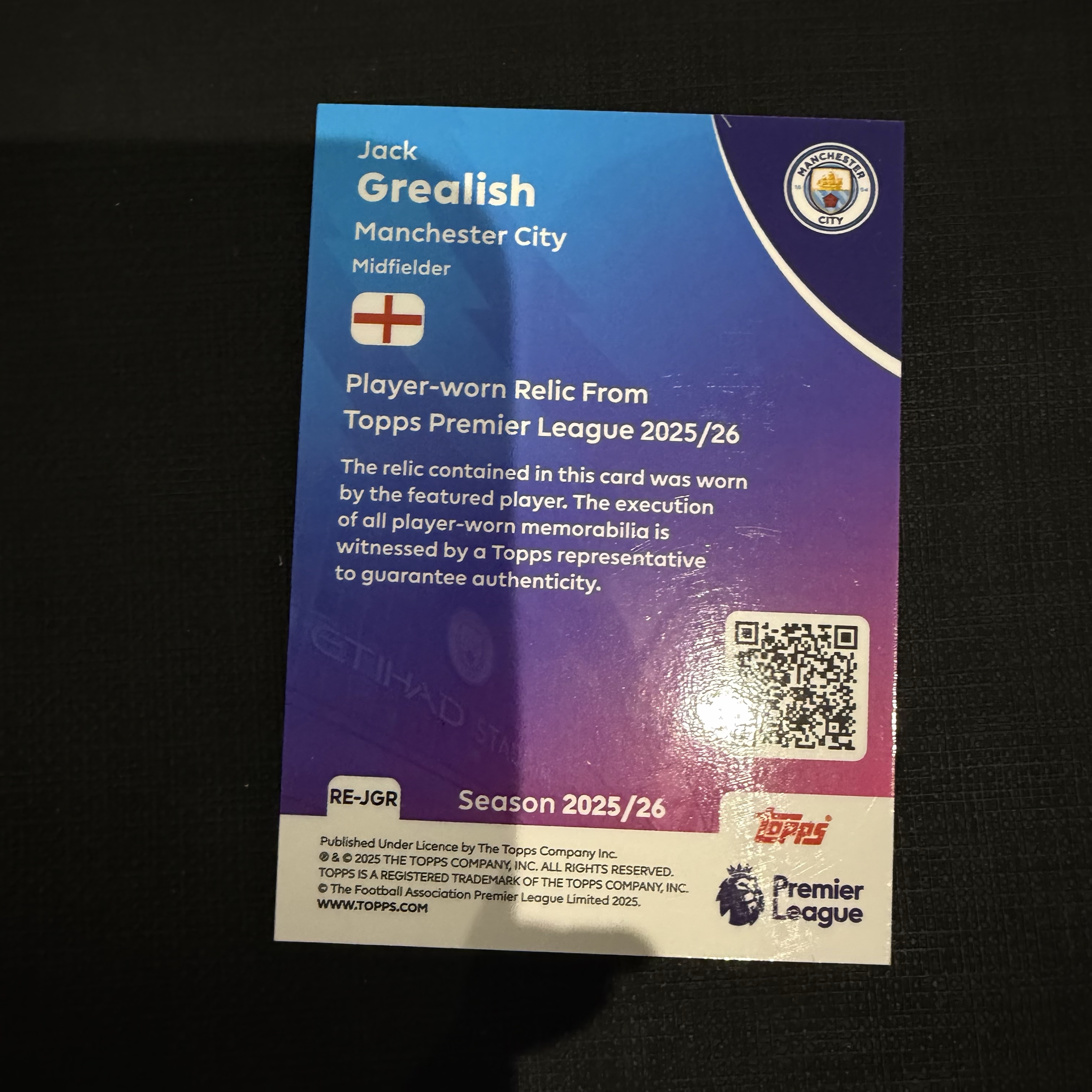 2025 Topps PREMIER LEAGUE Jack Grealish 英超 格拉利什 曼城 小窗物料 亲穿【默认微瑕一日一快递 不累计 不发到付】卡aa