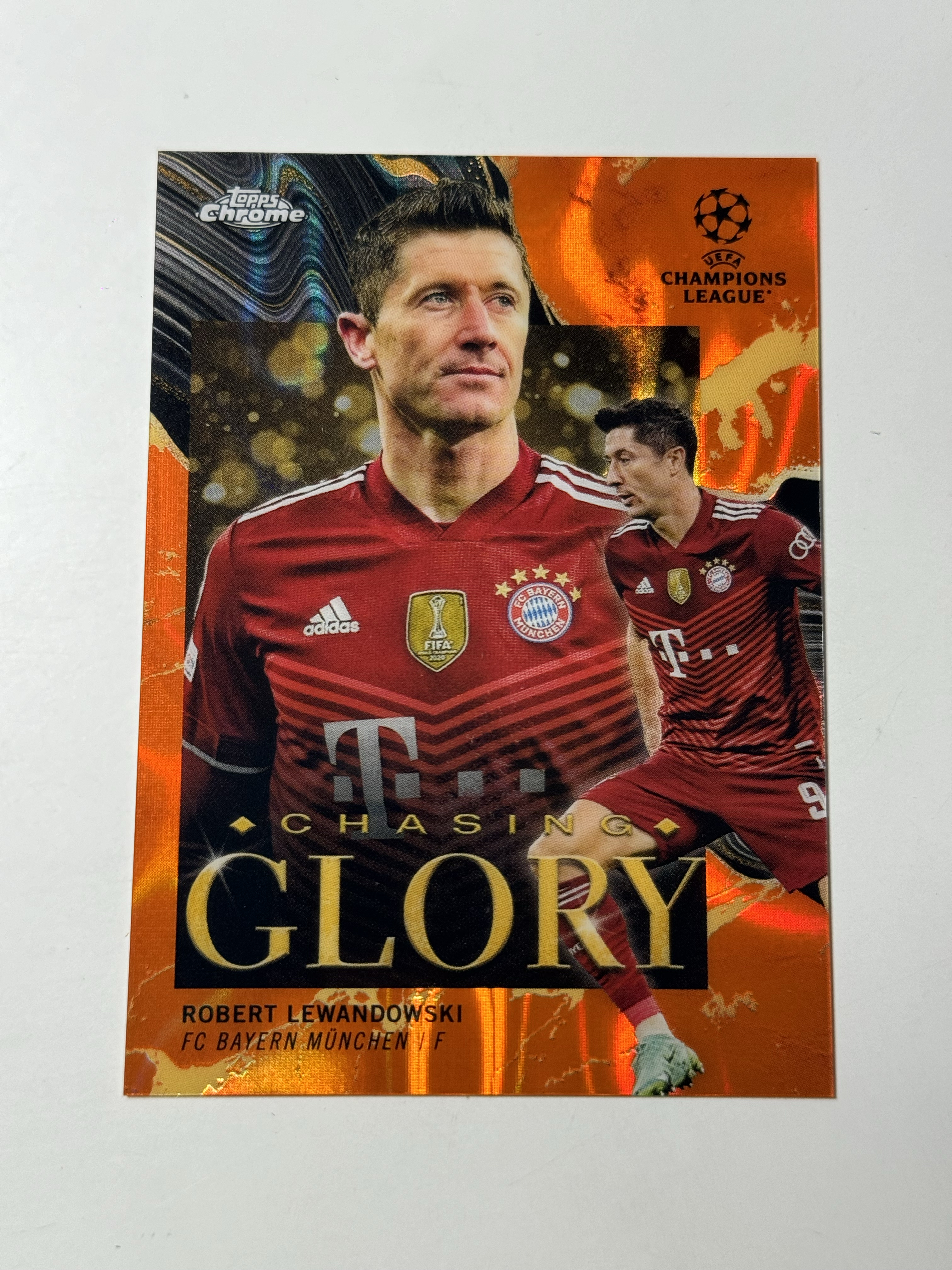 2021-22 Topps Chrome Robert Lewandowski 欧冠 TC 拜仁 波兰 巴萨 莱万多夫斯基 Glory特卡 荣耀特卡 约等于25编 橙折 卡品如图 收藏必备