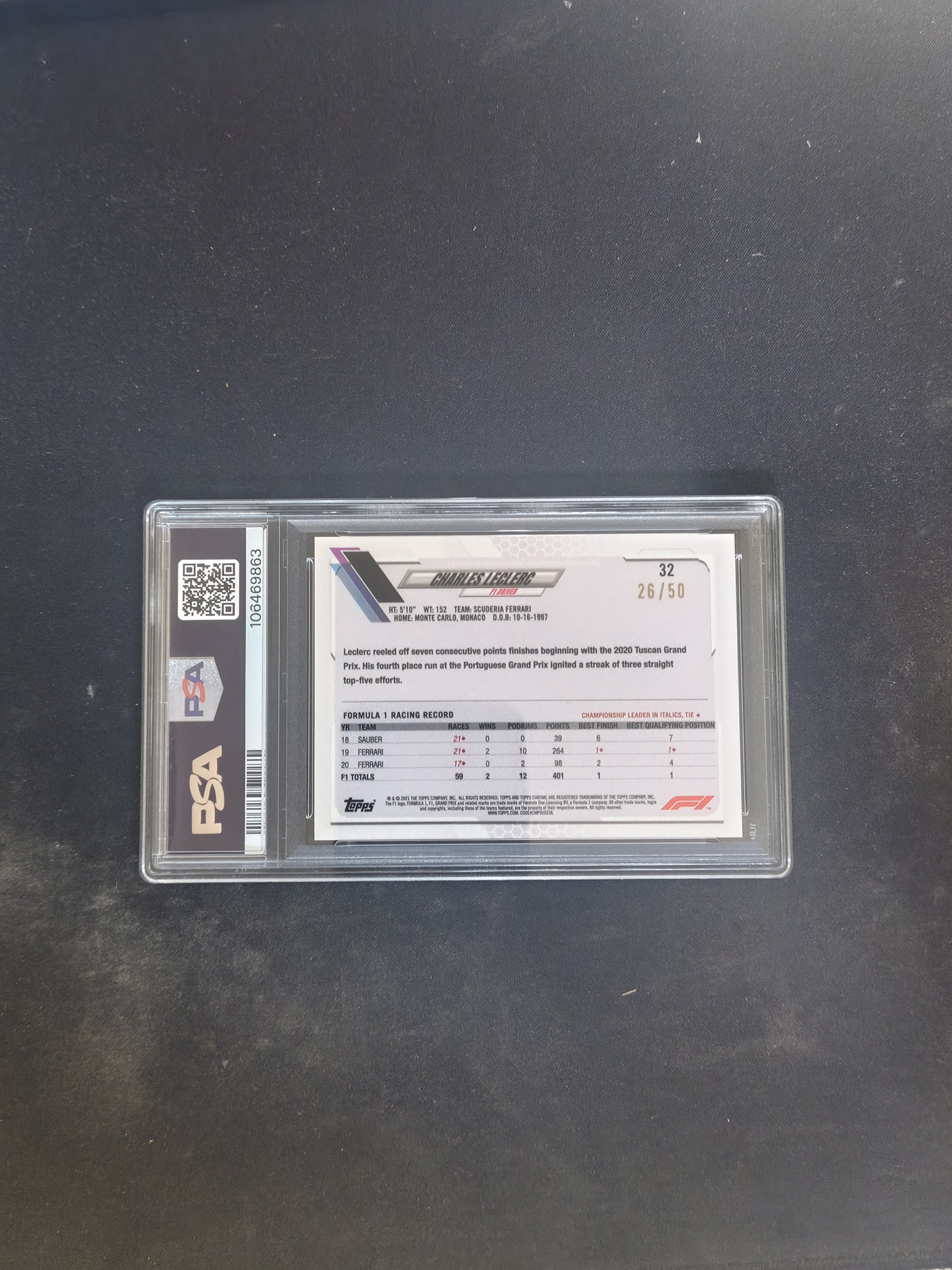 2021 Topps Chrome Charles Leclerc #32 PSA10 Formula 1 F1 法拉利 夏尔 勒克莱尔 葡萄牙大奖赛 金折 金碎冰 50编 超低POP4