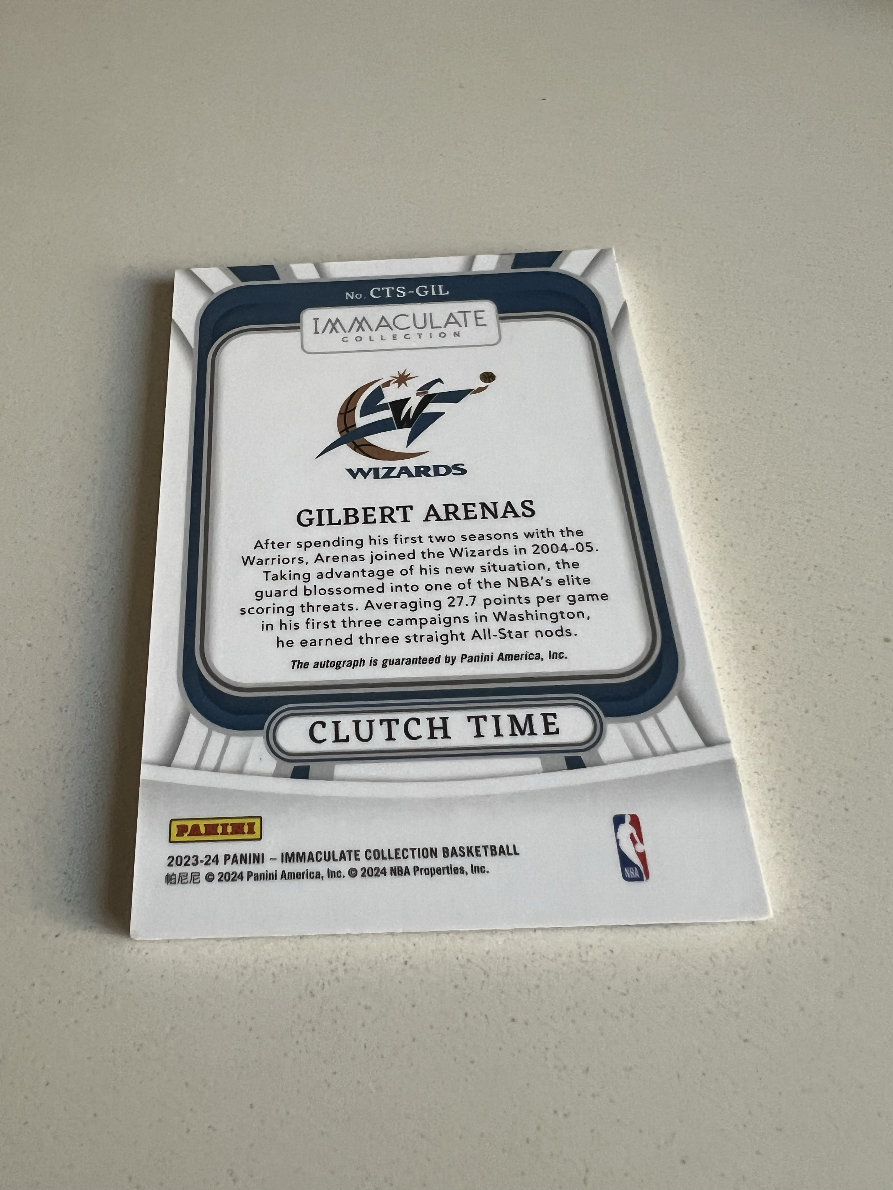 2023-24 Panini Immaculate Gilbert Arenas 帕尼尼 大将军 阿里纳斯 签字 卡签 关键时刻 奇才 对飙科比,clutch time 限量99编 镜面设计