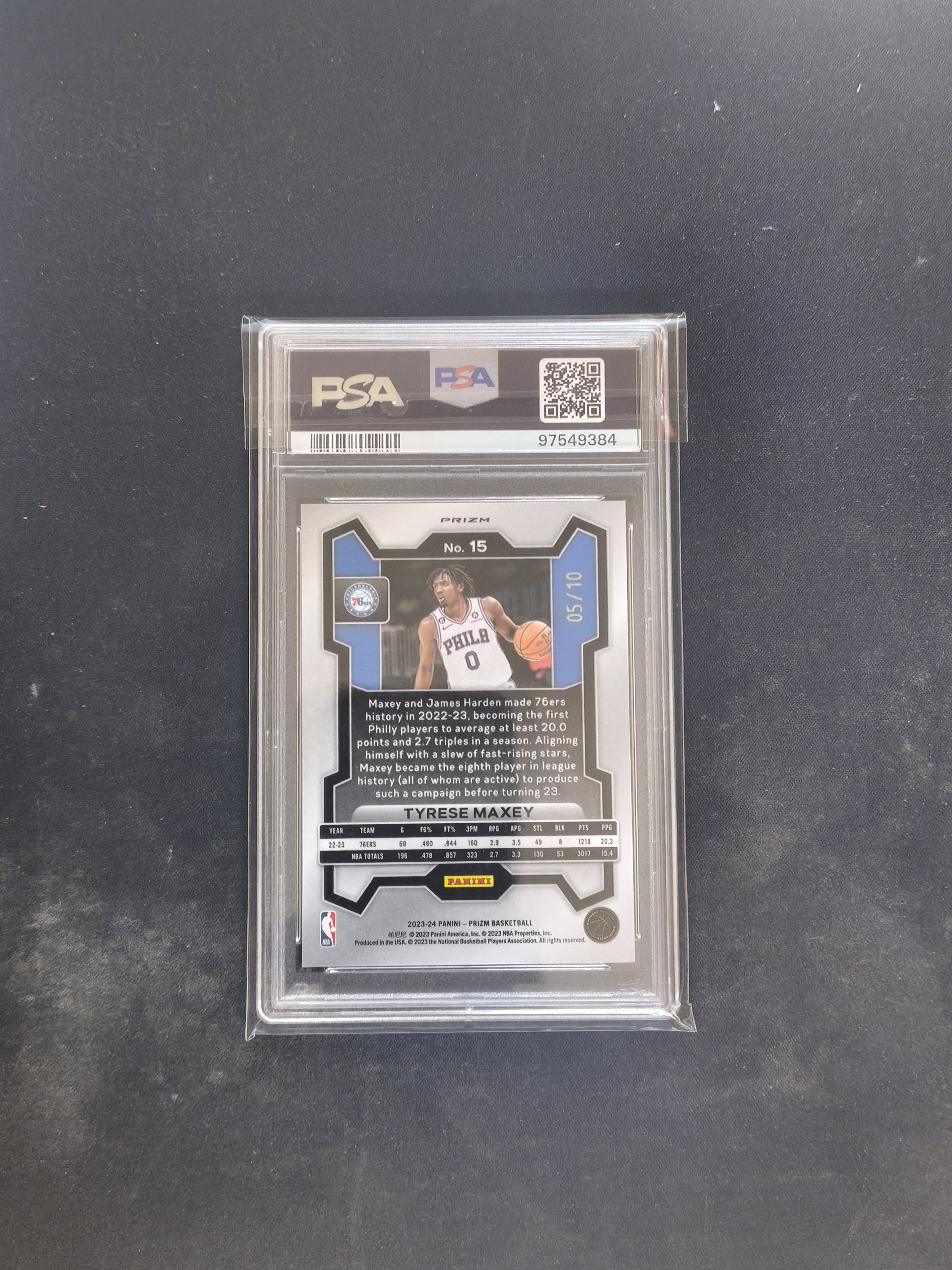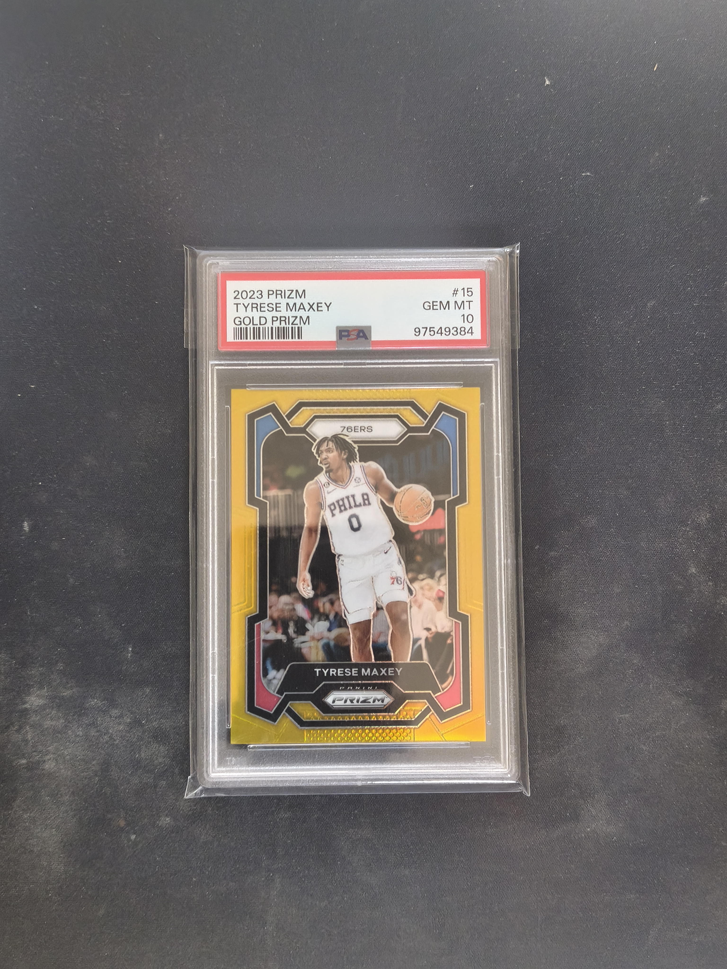 2023-24 Panini Prizm Tyrese Maxey #15 PSA10 76人 马克西 低编 正金折 10编 POP4 连号金shimmer在拍