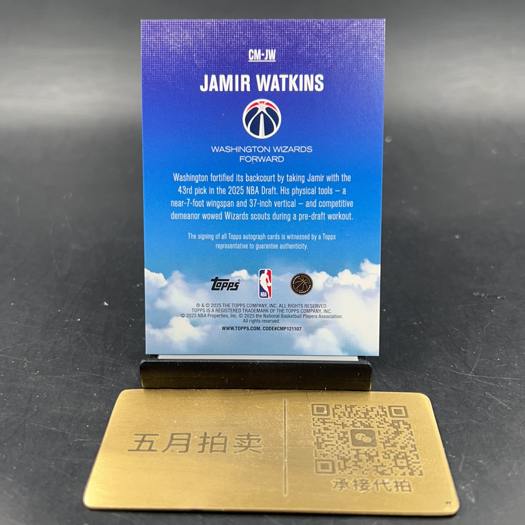 2025 Topps Basketball Jamir Watkins RC 【五月拍卖 顺丰空运 】新秀 奇才 折射 贾米尔 沃特金森 现代标志签 签字 卡品如图 皇冠u59