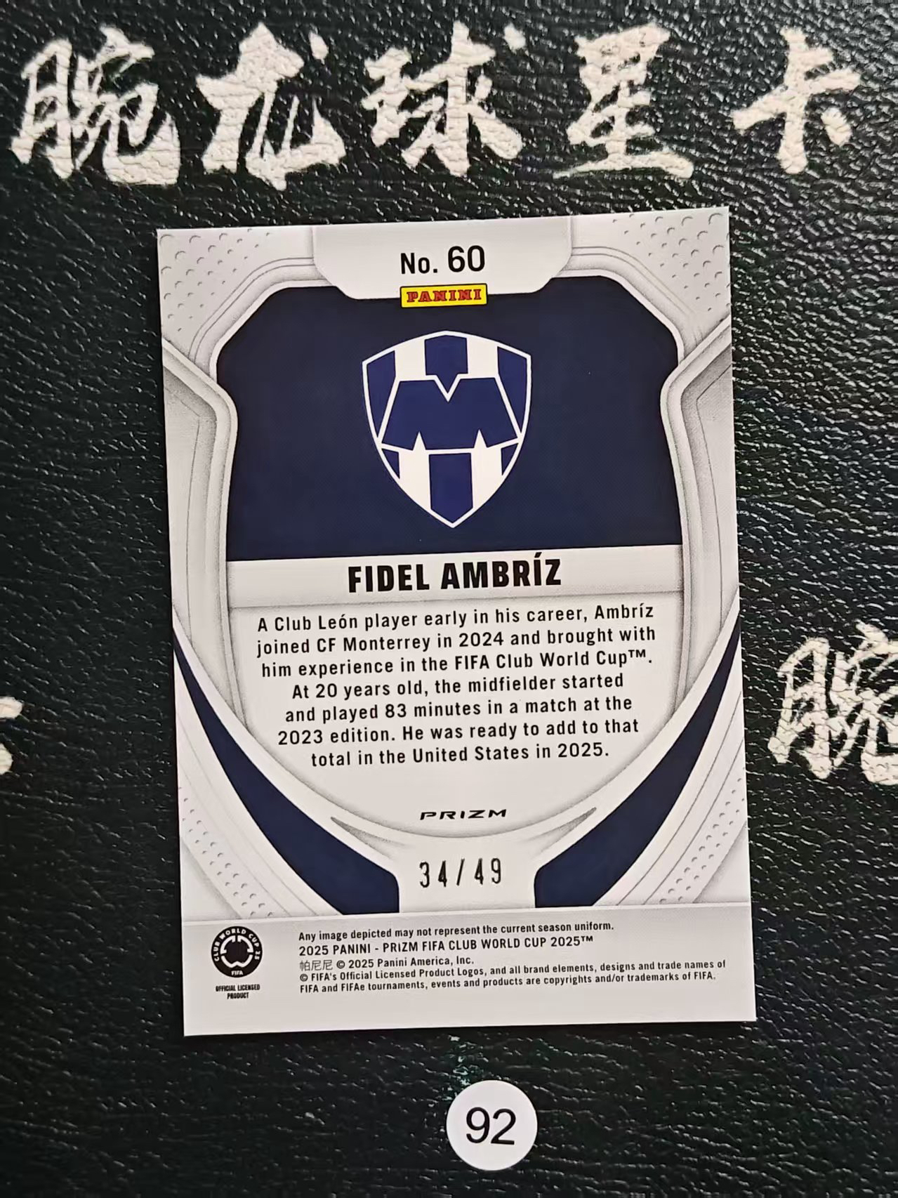 2025 【腕龙拍卖 接代卖】 腕龙HanwaiiAR4 Panini Prizm 世俱杯 PZ 菲德尔 安布里斯 RC新秀 紫潘多拉折 34/49编 FIDEL AMBRIZ 卡品如图