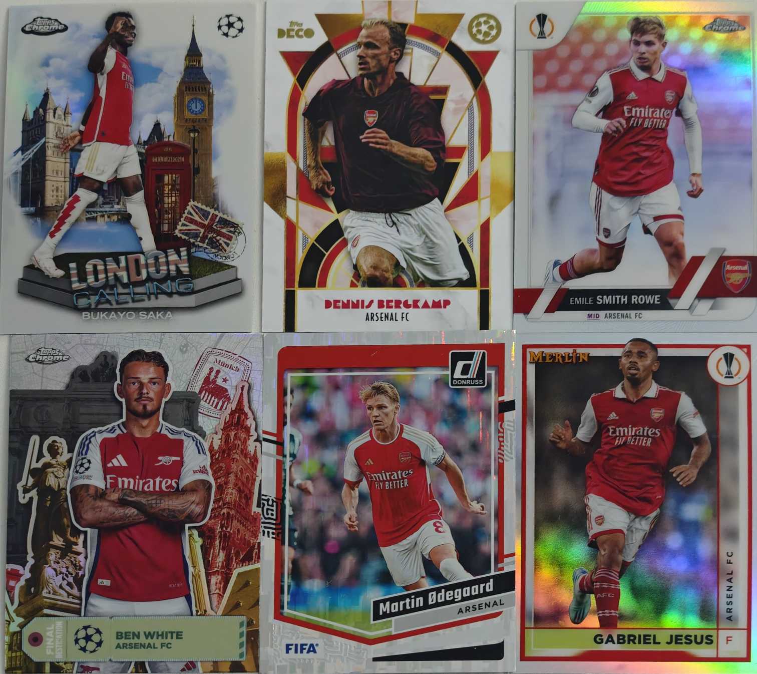 2024-2025 帕尼尼 Topps 阿森纳 萨卡 特卡 热苏斯 梅林 厄德高 杜蕾斯 瀑布折 新秀 卡品如图 lot 6张打包 【可合并不累计】