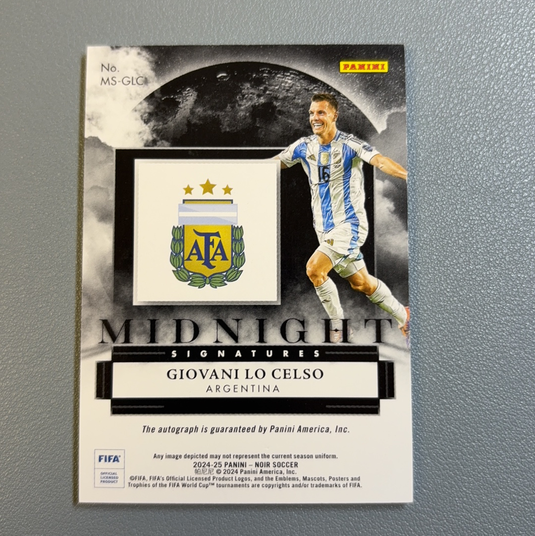 【风速狗】2024-25 Panini Noir 足球 诺尔 Giovani Lo Celso 洛塞尔索 阿根廷 签字 卡签 午夜签字 23/99编 完美墨迹 轻印 nana