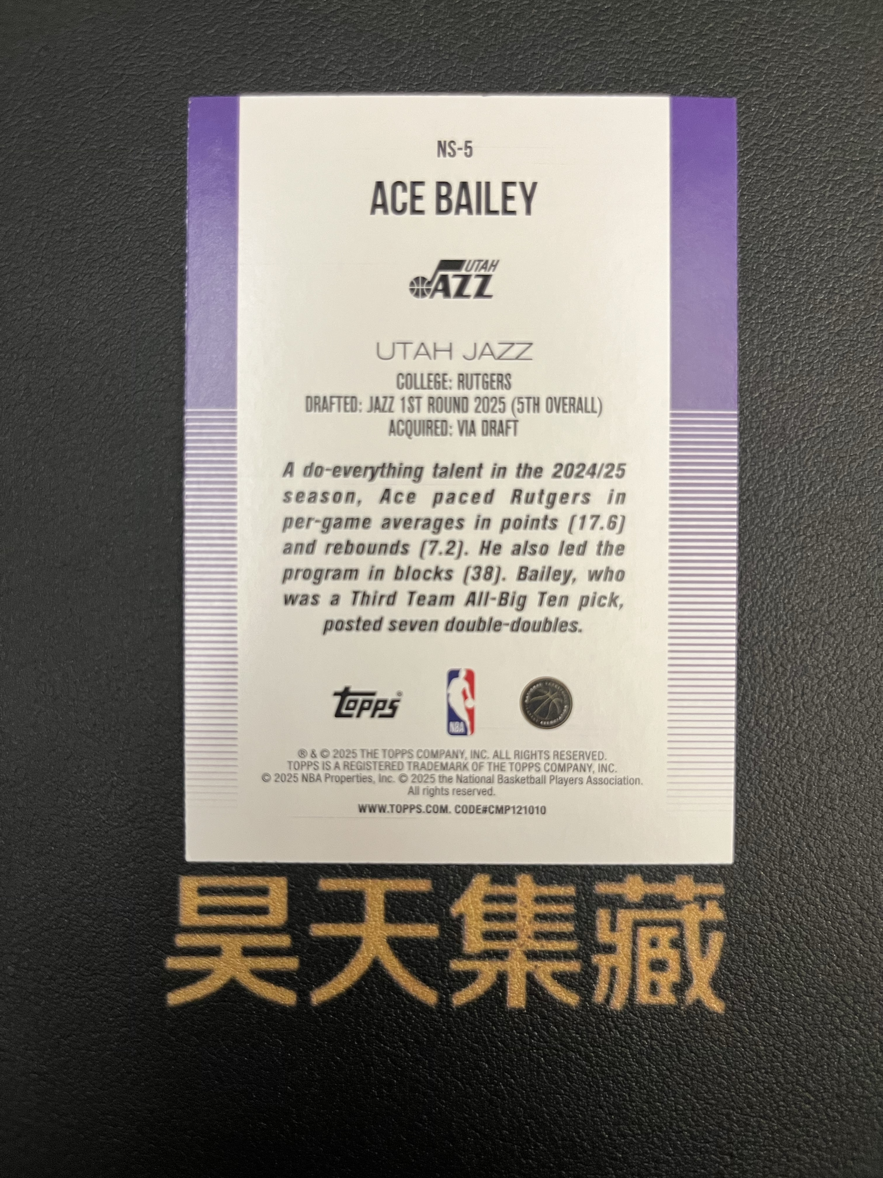 【参拍】卡品墨迹如图所示(厚卡异形卡等都有正常白边白角,部分系列会有特殊瑕疵),出价前请认真看图。如拍到卡后有任何艺术家行为(包括但不限于在通行卡品里挑瑕疵索要赔偿或退卡等)一律投诉拉黑处理。所卖卡未经描述均为通行品,可能会有细微瑕疵;打包标卡可能会有不同程度(包含非通行可能)的瑕疵;评级卡壳和原封砖的磨损不包含在卡品范围内;交换板只邮寄不发码;多张上拍卡品通行的同款卡片或盒子会随机发货。介意者请勿参拍