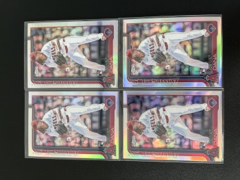 4.卡品如图请看仔细,照片很清楚!请看清楚再拍!折射系列以及马赛克折射系列经常会有一道折射横线 或点状痕 是印刷问题不属于卡品残次范畴,介意者请勿拍。厚卡有轻微白边属于正常现象!如无特殊说明均为通行品。IMM,NOIR, 金书,小真金,国宝,等厚卡系列卡品一般,边角经常有小问题介意勿拍!老卡有白边白角属于正常卡品,镜面卡签字经常有横条竖条印刷划痕属于正常通行品相!评级卡砖上的划痕和破损以及评级砖内的卡有卡品问题一律不属于品相问题