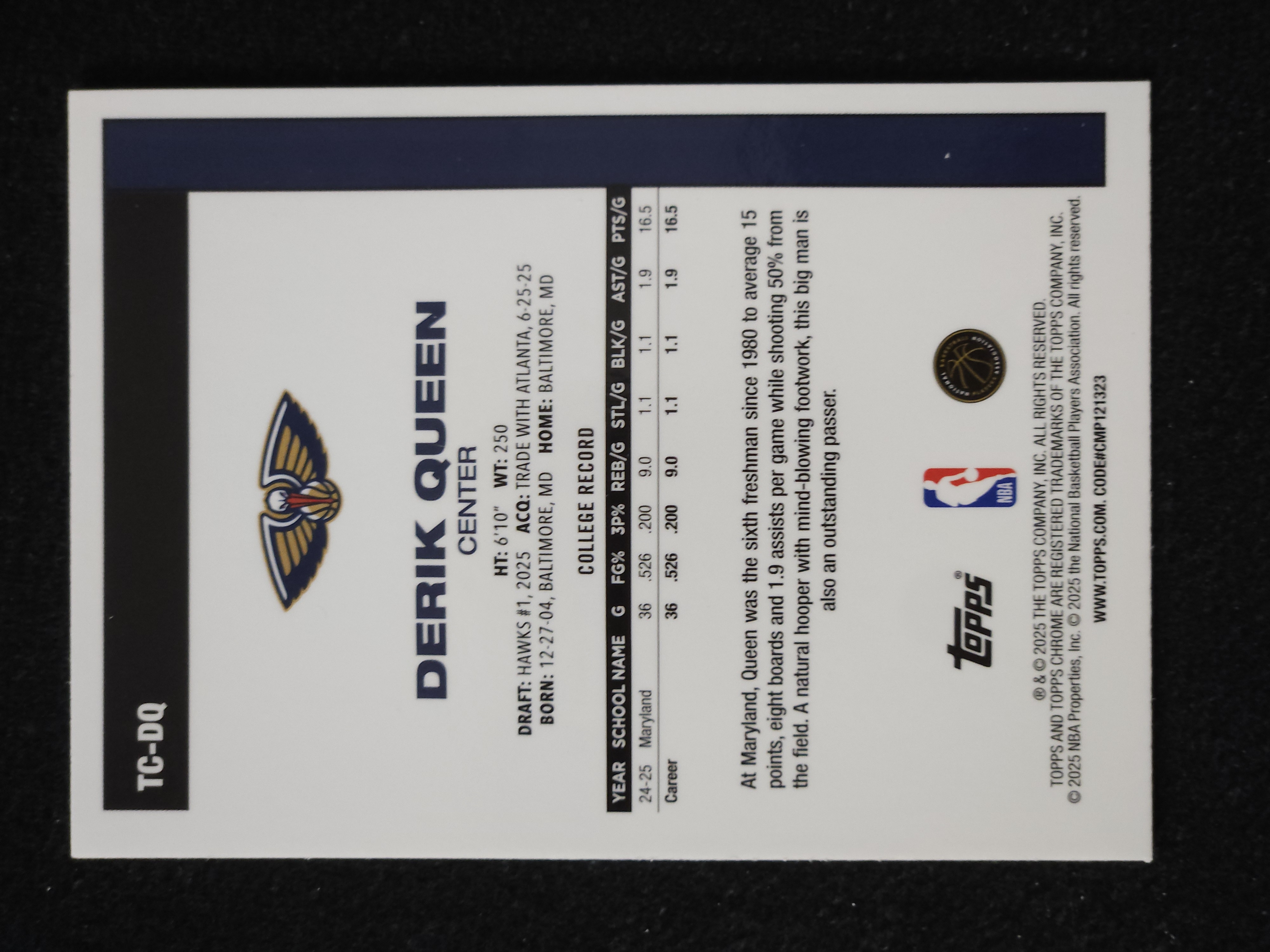 2025-26 Topps flagship Derik Queen RC 【流星代拍】旗舰 chrome插入 德里克 奎因 鹈鹕 新秀 银折 mojo折 45周年 复古 卡品如图 帅比 F