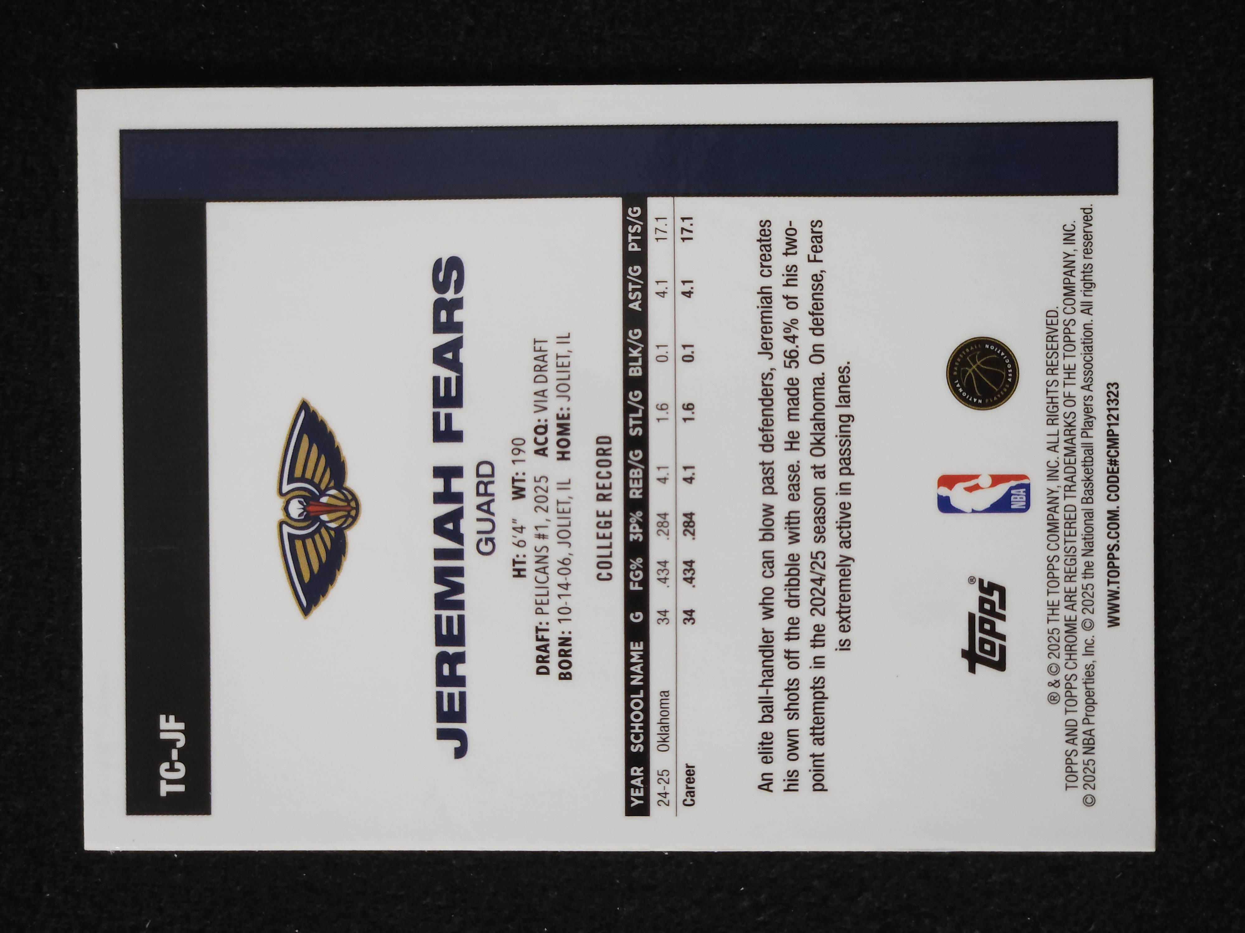 2025 Topps Basketball Chrome Jeremiah Fears RC 【流星代拍】新秀 鹈鹕 杰里迈亚 费尔斯 MOJO折 折射 45周年复古 1980 卡品如图 帅比 F