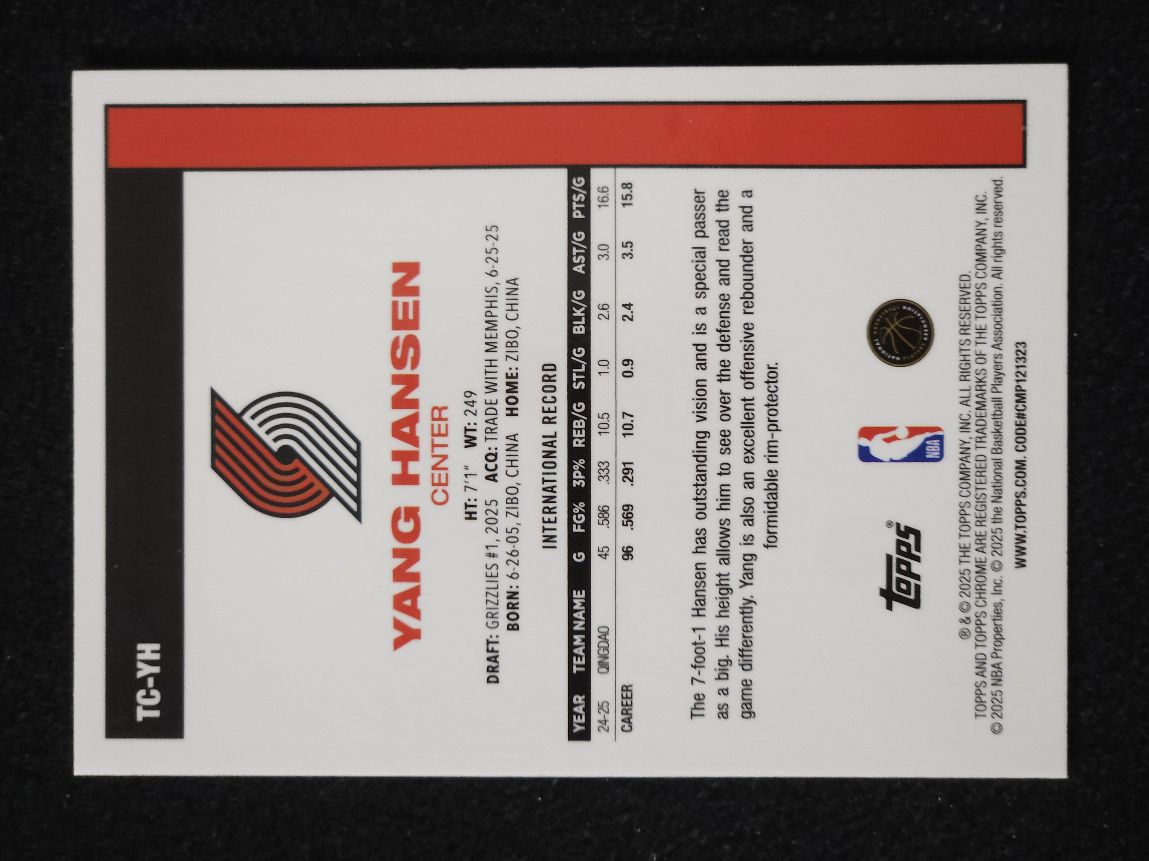 2025-26 Topps FLAGSHIP 杨瀚森 RC 【流星代拍】Chrome插入 开拓者 杨瀚森 新秀 mojo折 迷宫折 折射 微瑕 实卡精美 卡品如图 收藏必入 帅比 F