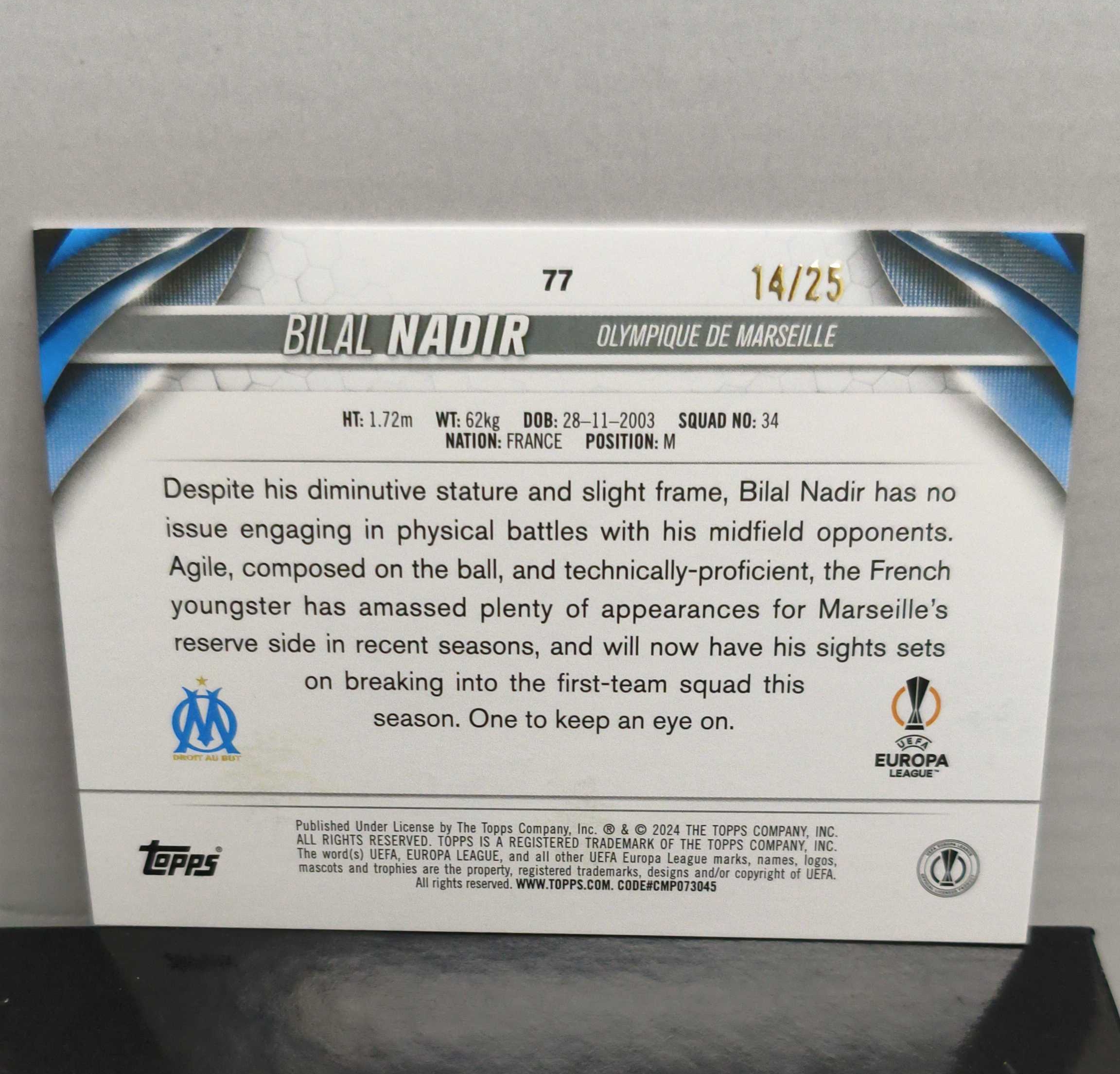 2024 TOPPS UEFA EOROPA LEAGUE BILAL NADIR 马赛 比拉勒·纳迪尔 RC新秀 熔岩折射 14/25编 收藏精品