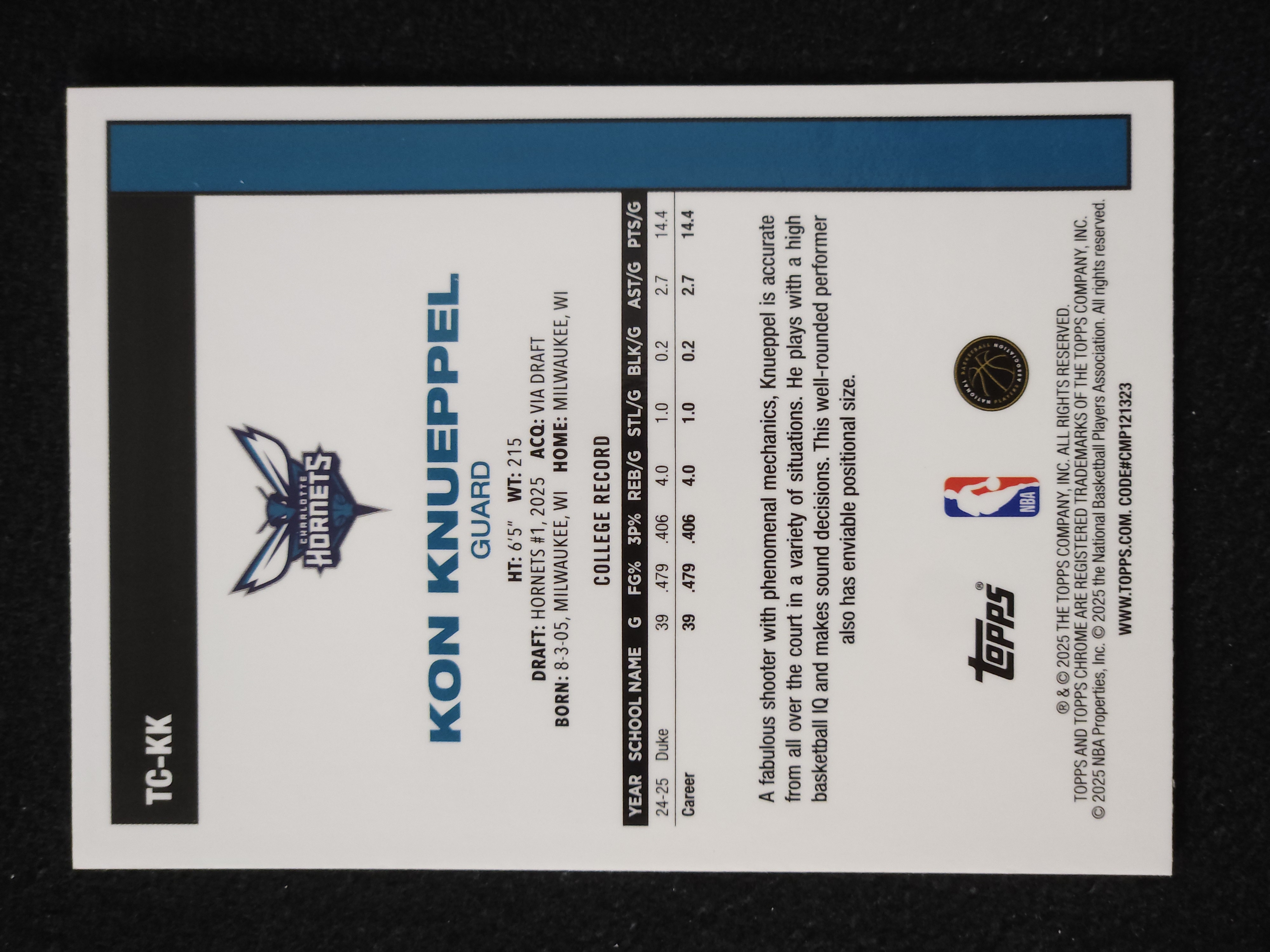 2025 Topps Chrome Kon Knueppel RC 【流星代拍】tc Chrome 黄蜂 康 克尼普尔 新秀 mojo折 45周年复古 卡品如图 帅比 F