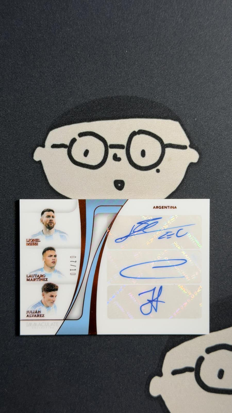 2024-25 Panini Immaculate Messi Alvarez Martinez 【HH47】 帕尼尼 爱咪咪 梅西 阿尔瓦雷斯 马丁内斯 阿根廷 三人 签字 /10编 微瑕 世界杯夺冠阵容 卡品如图  收藏必备 JC