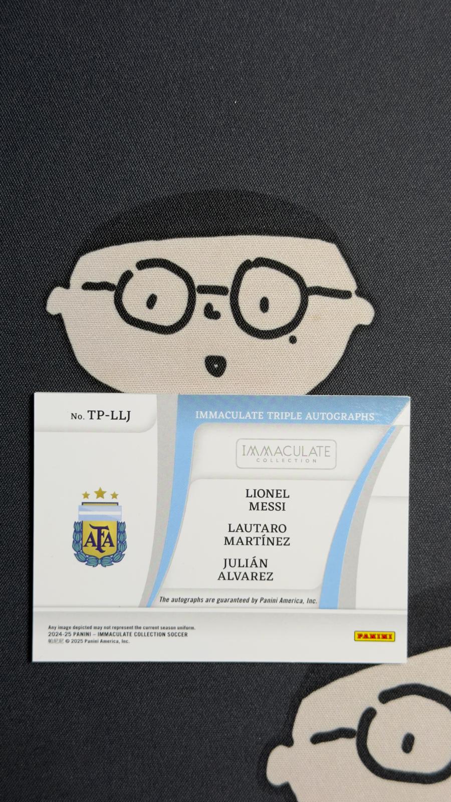 2024-25 Panini Immaculate Messi Alvarez Martinez 【HH47】 帕尼尼 爱咪咪 梅西 阿尔瓦雷斯 马丁内斯 阿根廷 三人 签字 /10编 微瑕 世界杯夺冠阵容 卡品如图 收藏必备 JC