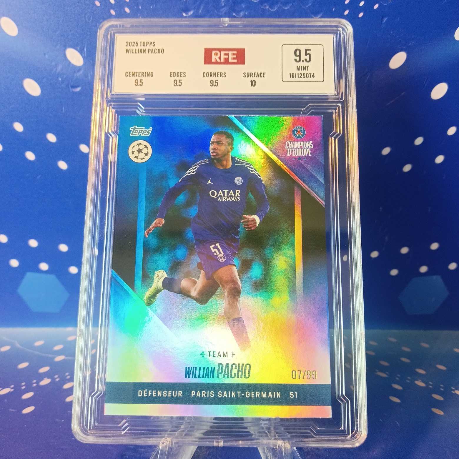 2025 Topps Lineage willian pacho 评级卡 威廉 帕乔 大巴黎 折射 限量版 07/99 编 实卡精美稀有 品质保障 投资收藏必备 生日礼物 【蓝色星球】