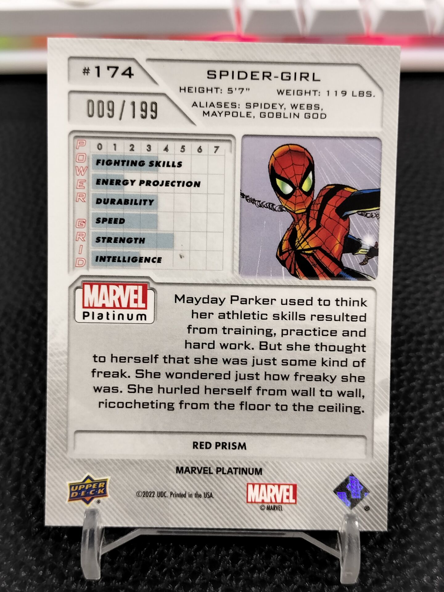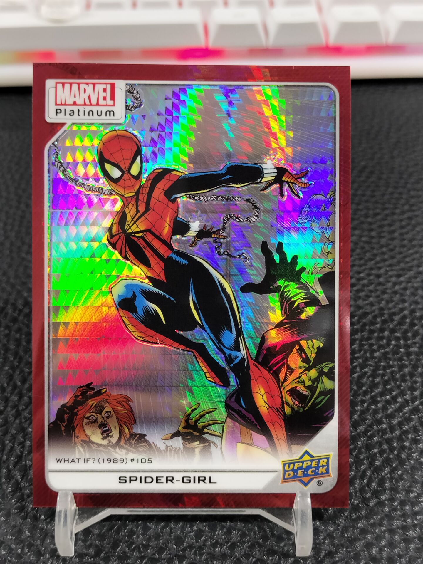 【浩行拍卖 截标预付82%】2022 Upper Deck Marvel Platinum Spider Girl 漫威 白金 蜘蛛女孩 龙鳞折 红折 折射 9/199编 专收必备 瑕疵看图「雨珠」1125E02恁飛