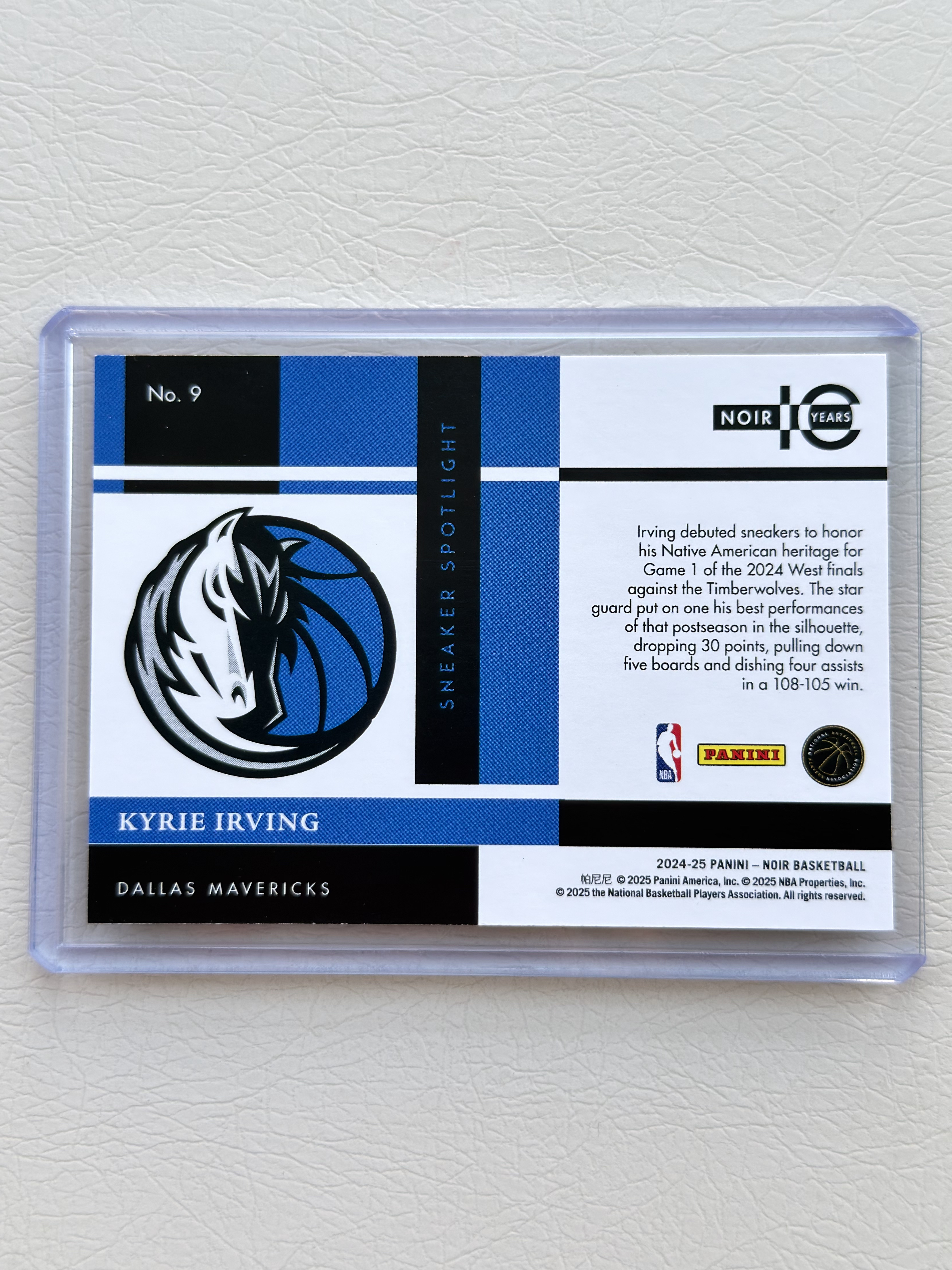 2024-25 Panini Noir Kyrie Irving 凯里 欧文 欧神仙 诺尔系列 鞋灯 聚光灯特卡 闪版 镜面 无签字 99编 大比例SSP 限量稀有 收藏必备 专收必备 詹姆斯 东契奇