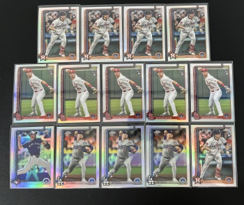 4.卡品如图请看仔细,照片很清楚!请看清楚再拍!折射系列以及马赛克折射系列经常会有一道折射横线 或点状痕 是印刷问题不属于卡品残次范畴,介意者请勿拍。厚卡有轻微白边属于正常现象!如无特殊说明均为通行品。IMM,NOIR, 金书,小真金,国宝,等厚卡系列卡品一般,边角经常有小问题介意勿拍!老卡有白边白角属于正常卡品,镜面卡签字经常有横条竖条印刷划痕属于正常通行品相!评级卡砖上的划痕和破损以及评级砖内的卡有卡品问题一律不属于品相问题