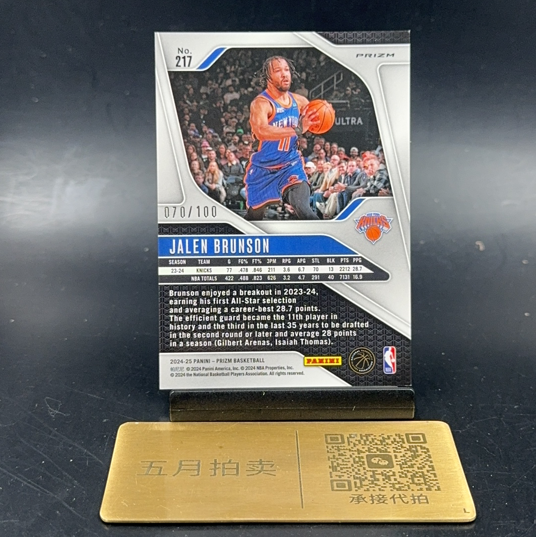 2024-25 Panini Prizm Jalen Brunson 【五月拍卖顺丰空运】pz 尼克斯 布伦森 红泡泡折 100编 折射 卡品如图 范一凡u7