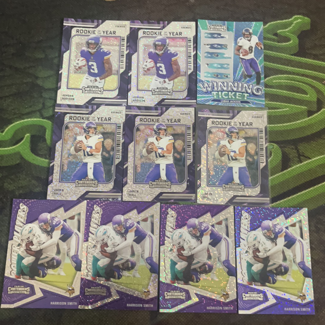 【小鸟代拍】2023 Panini Contenders 球票 Harrison Smith 哈里森 史密斯 Jaren Hall Jordan Addison 维京人 点点折 特卡 卡品如图