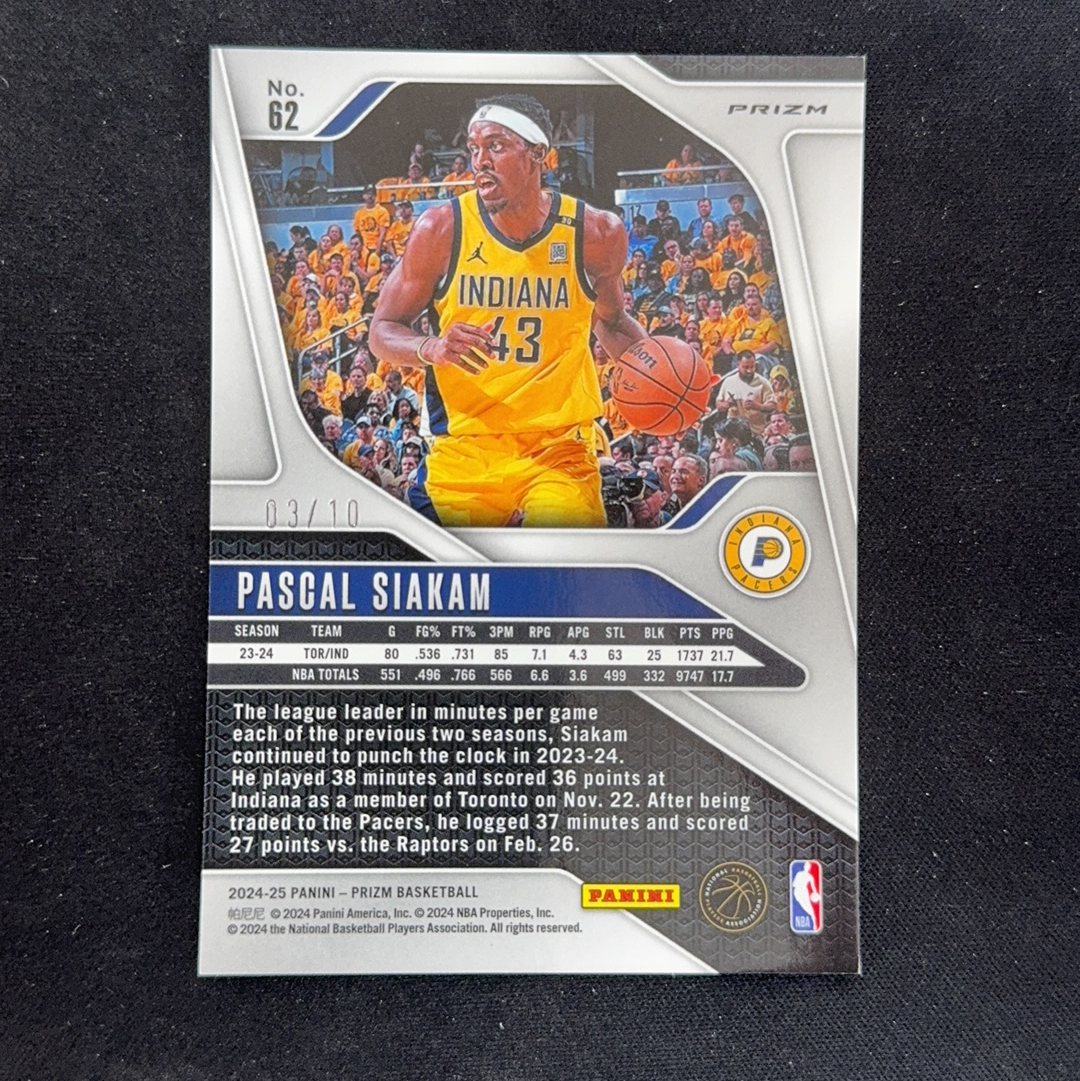 ![2024-25 Panini Prizm Pascal Siakam RC [WowCard]帕斯卡尔 西亚卡姆 步行者 Pz系列 Base 折射 金折 超低编 03/10编[逸凡]](https://images.cardhobby.com/24A85CF1BB014E4BB0947466510EB1271764077724.jpg)