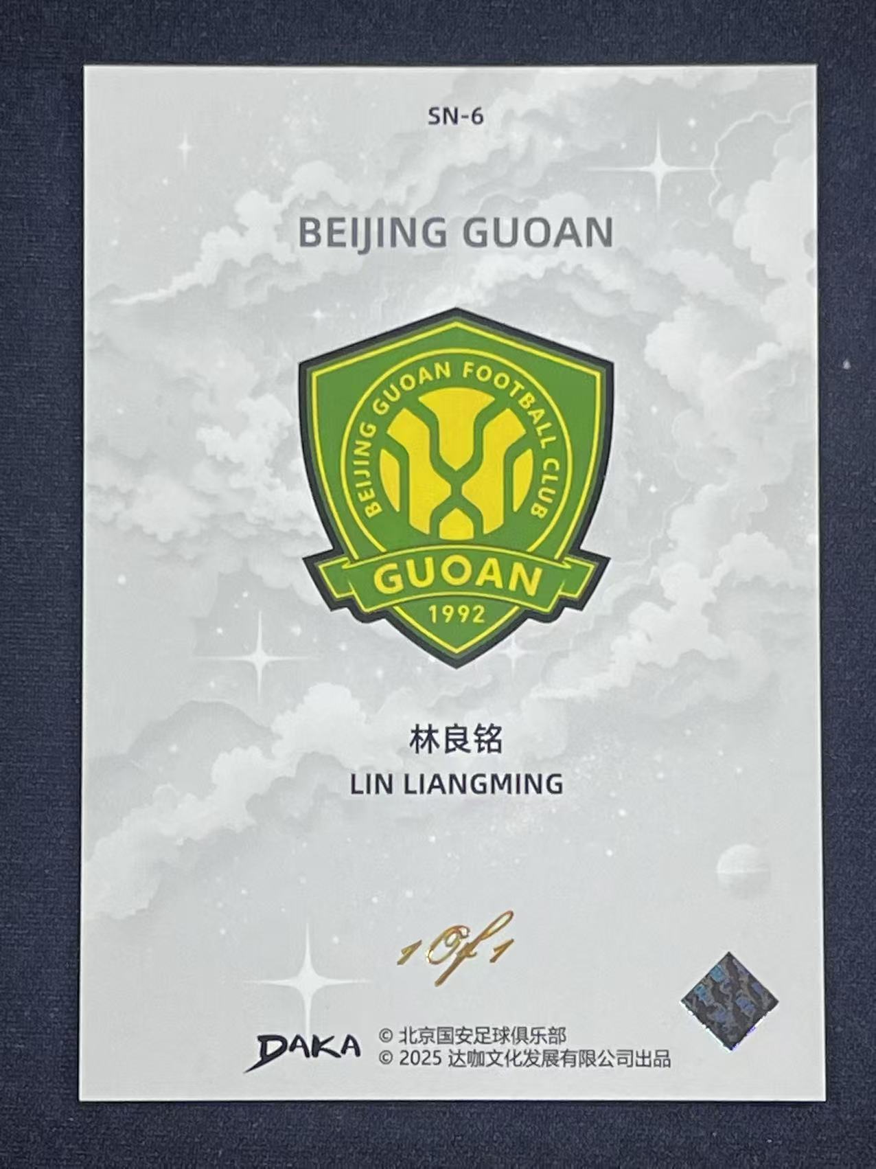 2025 DAKA 北京国安Top Audience Lin Liangming 林良铭 #SN-6 绿宇星辉 特卡 1/1编 1of1 黑折 林皇无限猖狂 贝勒27 国安活动见详情