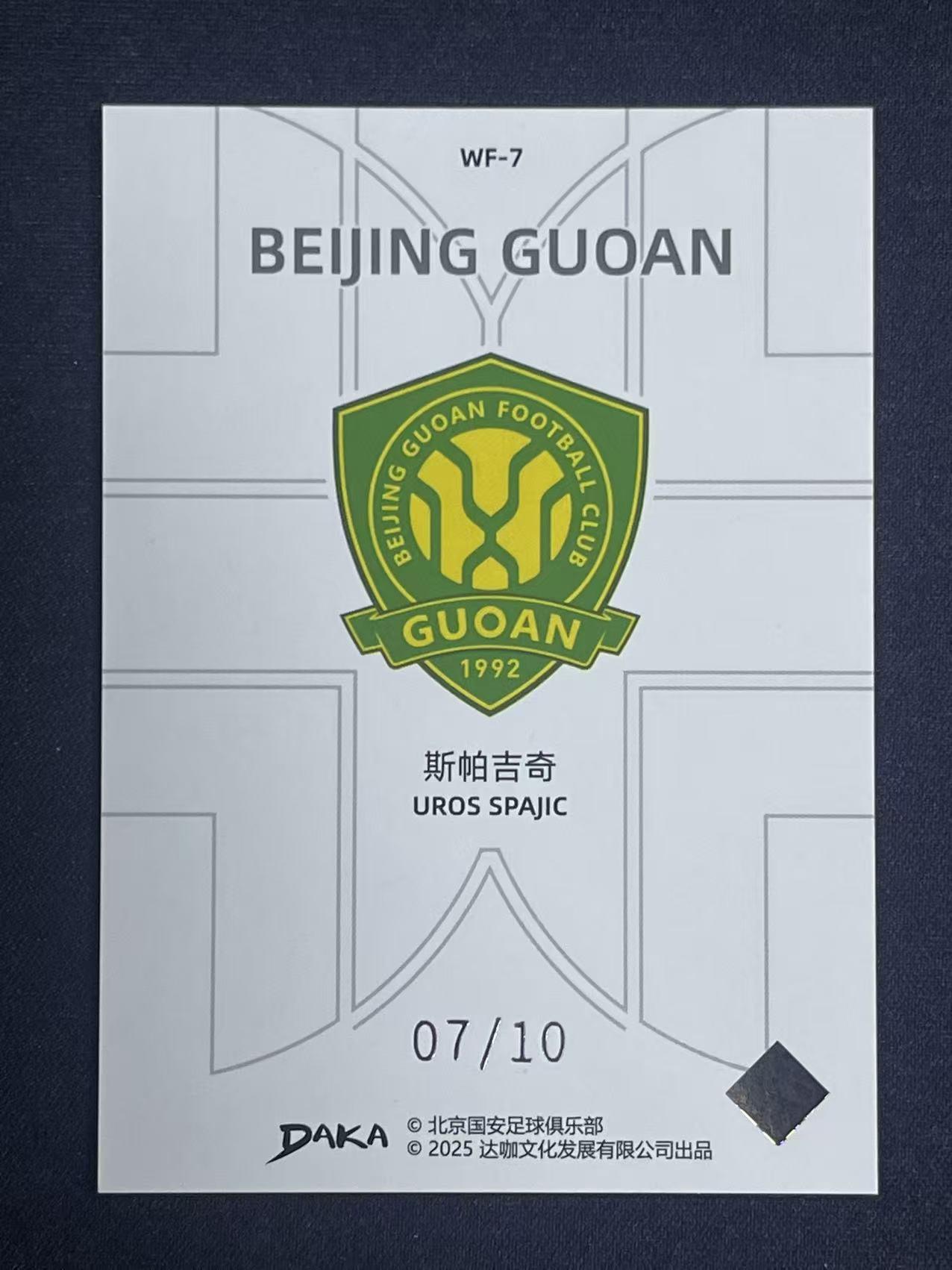 2025 DAKA 北京国安Top Audience Spajic 斯帕伊奇 形绘京安 特卡 07/10编 超低编 金波纹折 WF-7 国安活动见详情 晨灌熙