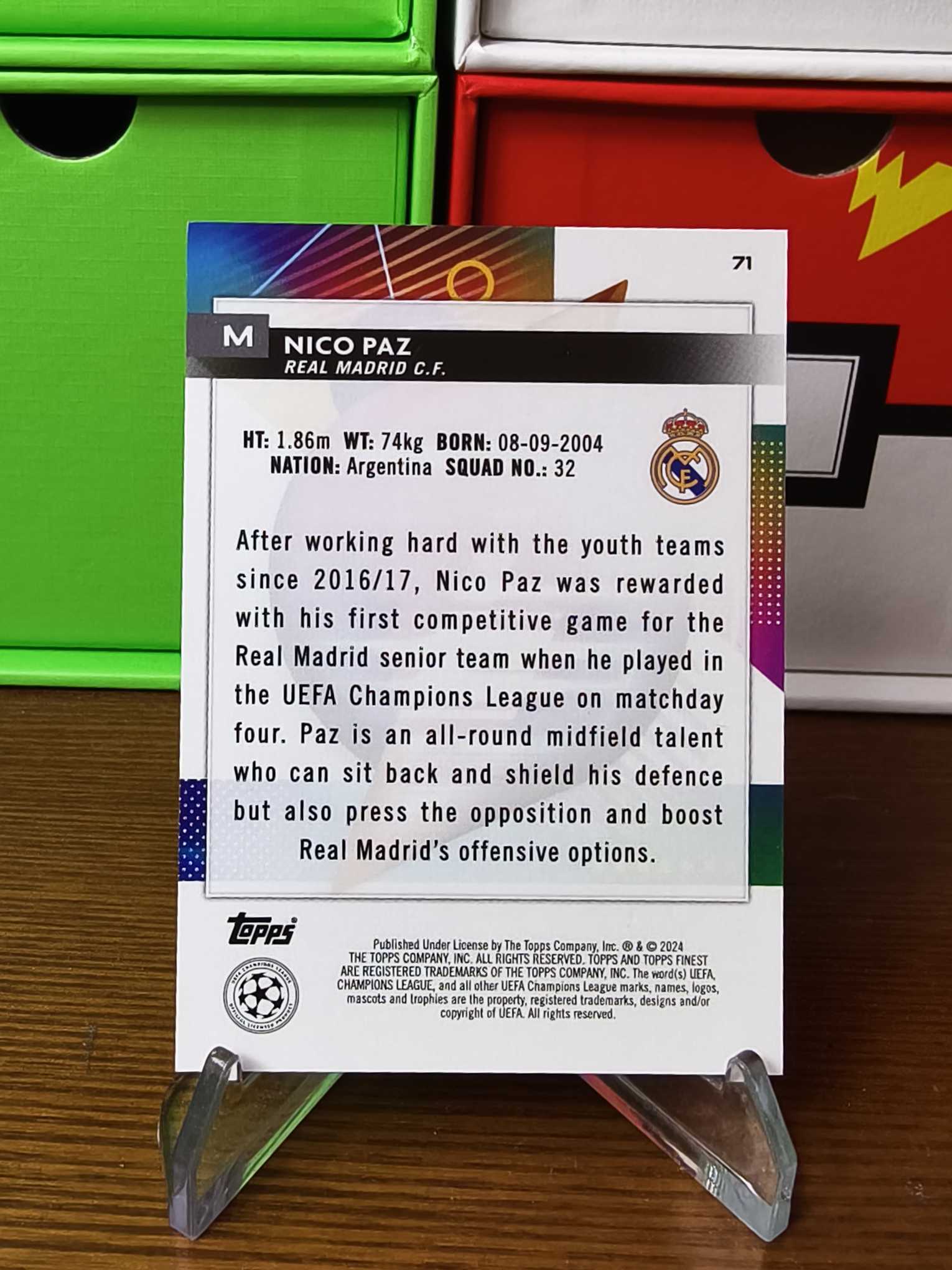 2024 Topps Finest NICO PAZ RC 皇马 科莫 尼科帕斯 大热新秀 199编 紫simmer折 实卡精美 如图 收藏 凑套 专收必备【拍前务必看描述】