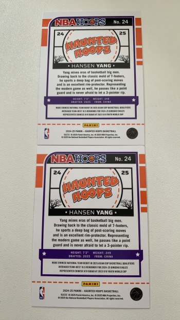 1,所有卡片实物拍摄,球星卡属于二手商品,不保证完美卡品,有瑕疵会提前说明,如果对卡品有疑问可以在结拍前通过站内私信联系,默认为通行品质,拍下后不接受议价,对卡片品质要求过高的藏友慎重。国宝imm手提 noir等系列厚卡、老卡,物料卡,有白边白角轻微压痕属于正常卡品,镜面卡有小划痕属于正常通行品相,Optic表面划痕或者小坑属于通病,评级卡壳、原封砖上的划痕和破损、不属于品相问题,折射系列经常会有一道折射横线是印刷问题不属于卡品残次范畴,介意者请勿拍,要评级追求完美卡品者请直接购买评级卡,多张Lot不保卡品,所有卡片的保护卡具是原卡主提供,本店不承担额外的卡具费用,如有需要可以额外购买,卡砖卡夹都有在售,lot不含卡具。