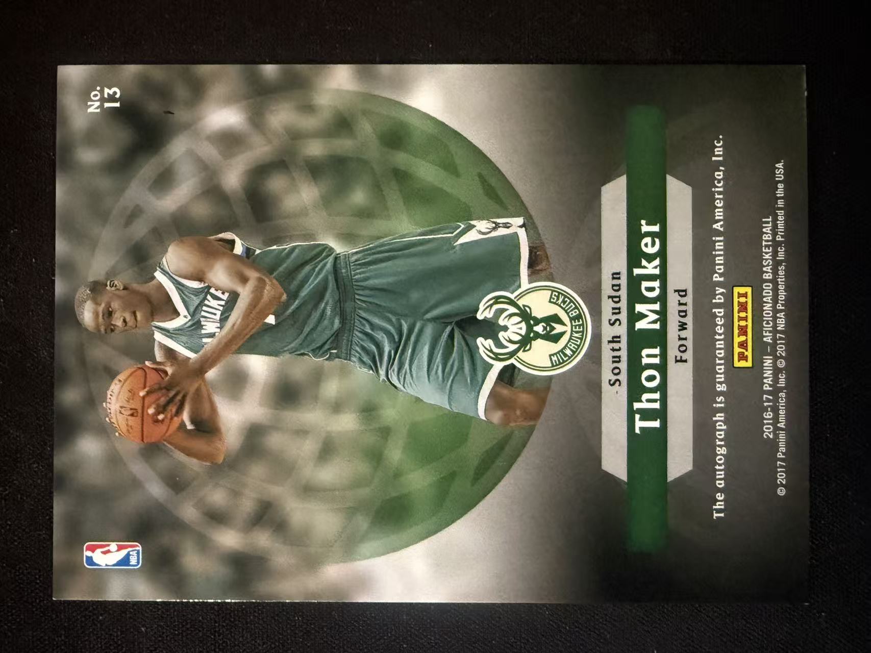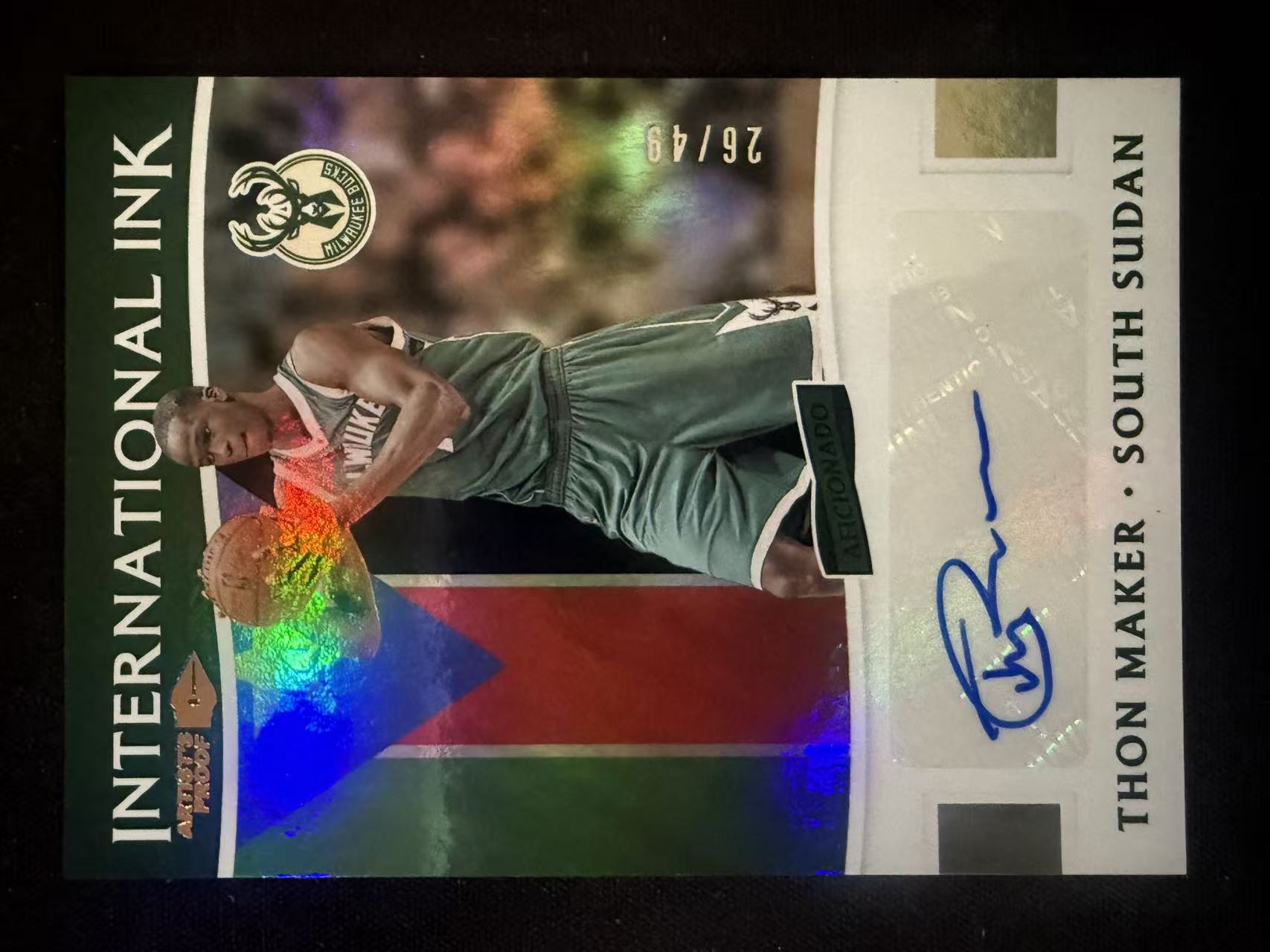 2016-17 Panini Aficionado Thon Maker 【大锦拍卖】雄鹿 索恩 马克 狂热 26/49编 国旗 折射 ink签 签字 贴签 卡品如图(星球)