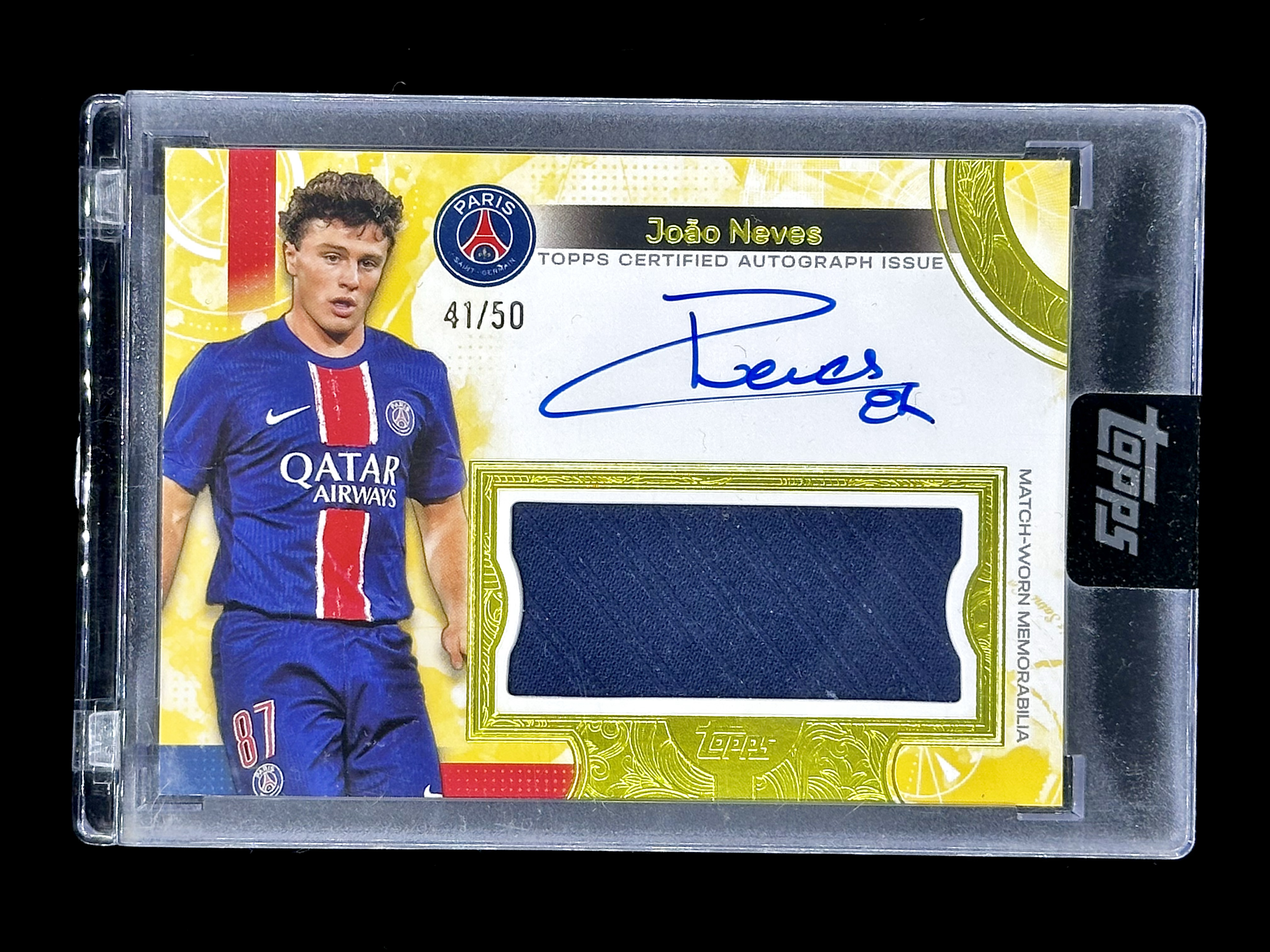 2024-25 Topps Exhibition Joao Neves 【麦考拍卖】顶级巴黎圣日尔曼展会队盒 MW球衣物料 卡签字签名限量卡 葡萄牙大巴黎超新星 若奥若昂内维斯 🪐/50编🪐原封砖