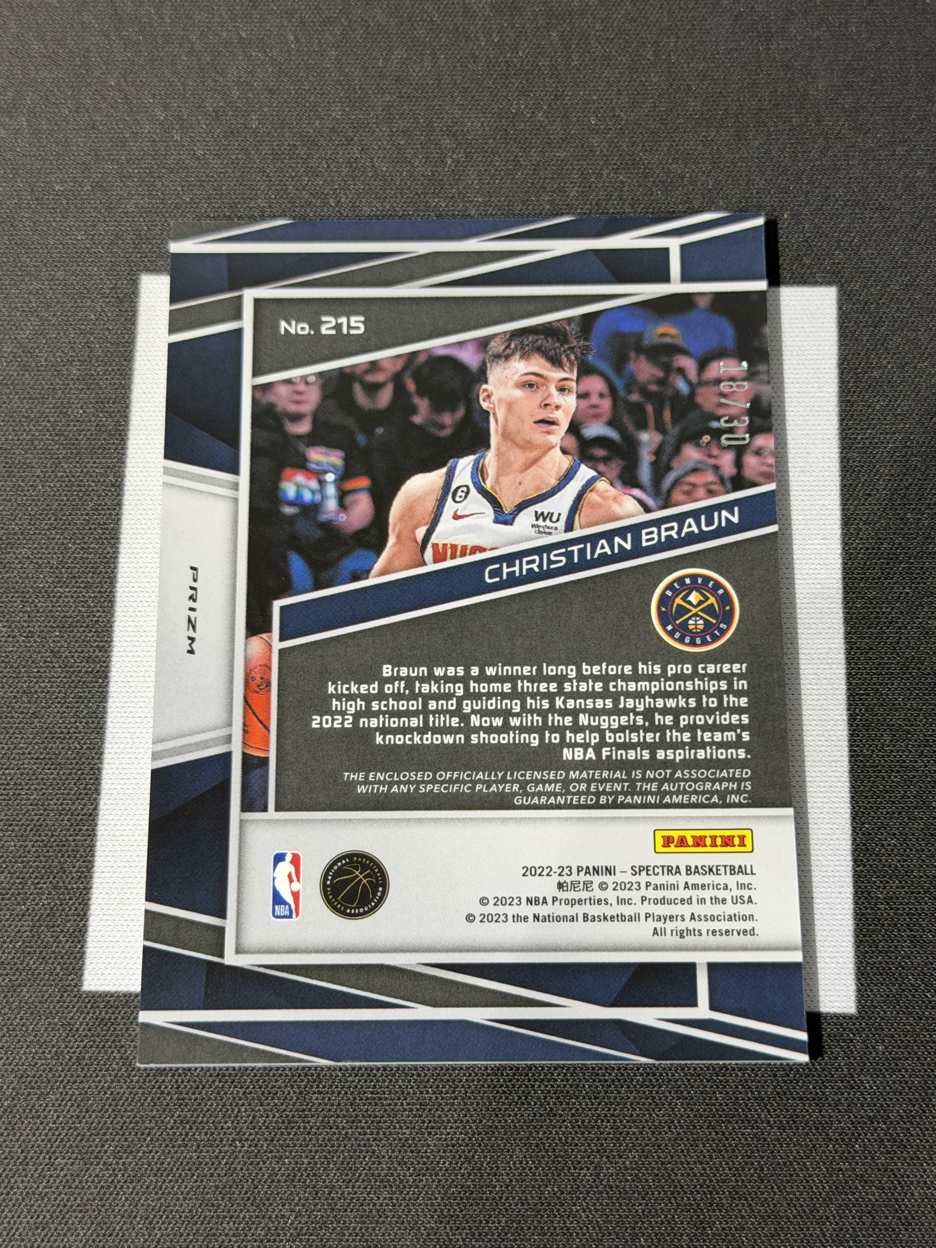2022-23 Panini Spectra Christian Braun RC 【十元拍卖】光谱 掘金 克里斯蒂安 布劳恩 新秀rc rpa 签字卡签 patch 物料切割 18/30编【睿宝】