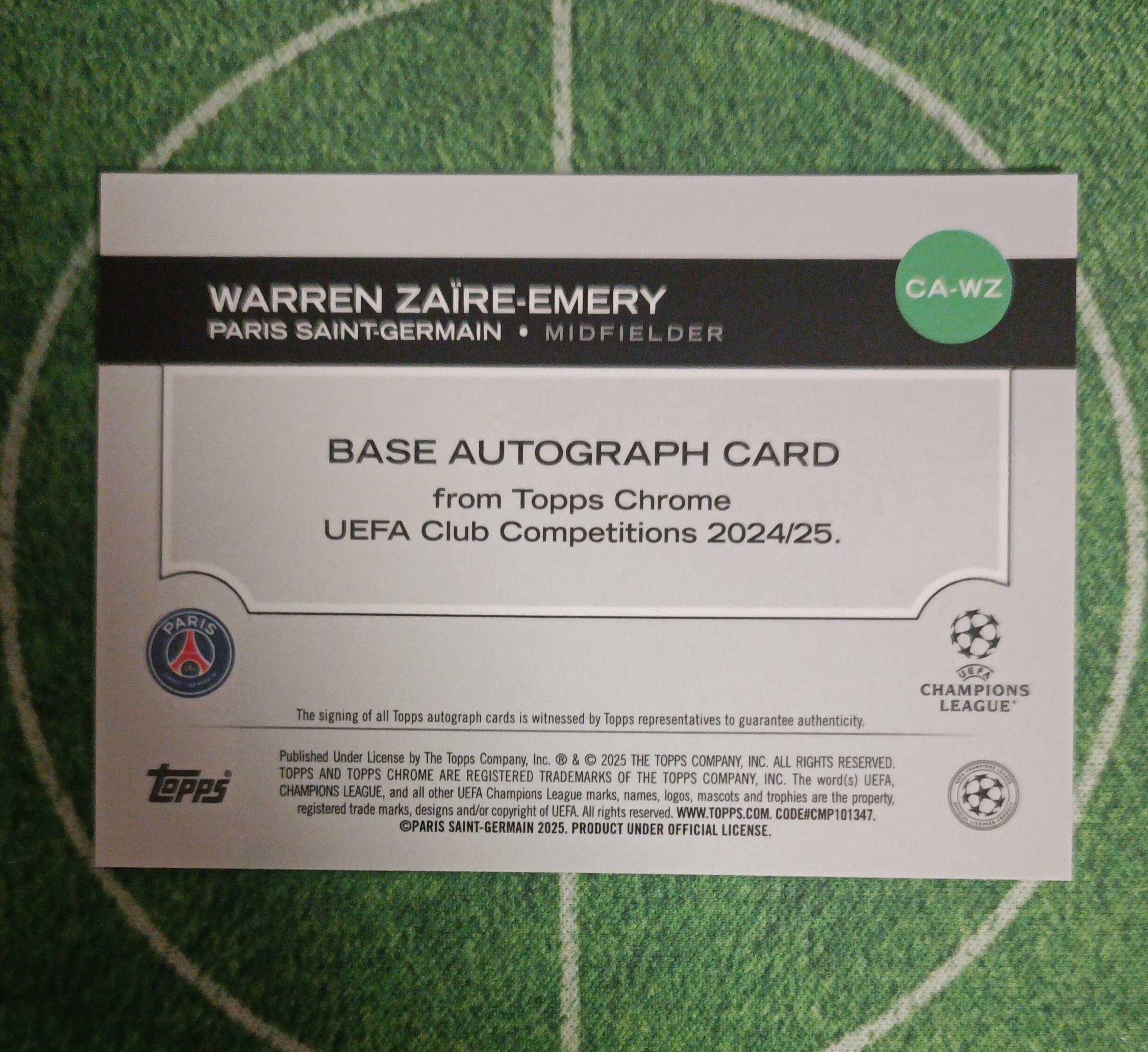2025 Topps Chrome Warren Zaïre-Emery 欧冠 巴黎圣日耳曼 埃梅里 签字 银折签字 法国🇫🇷 状态火热 未来之星 卡品如图