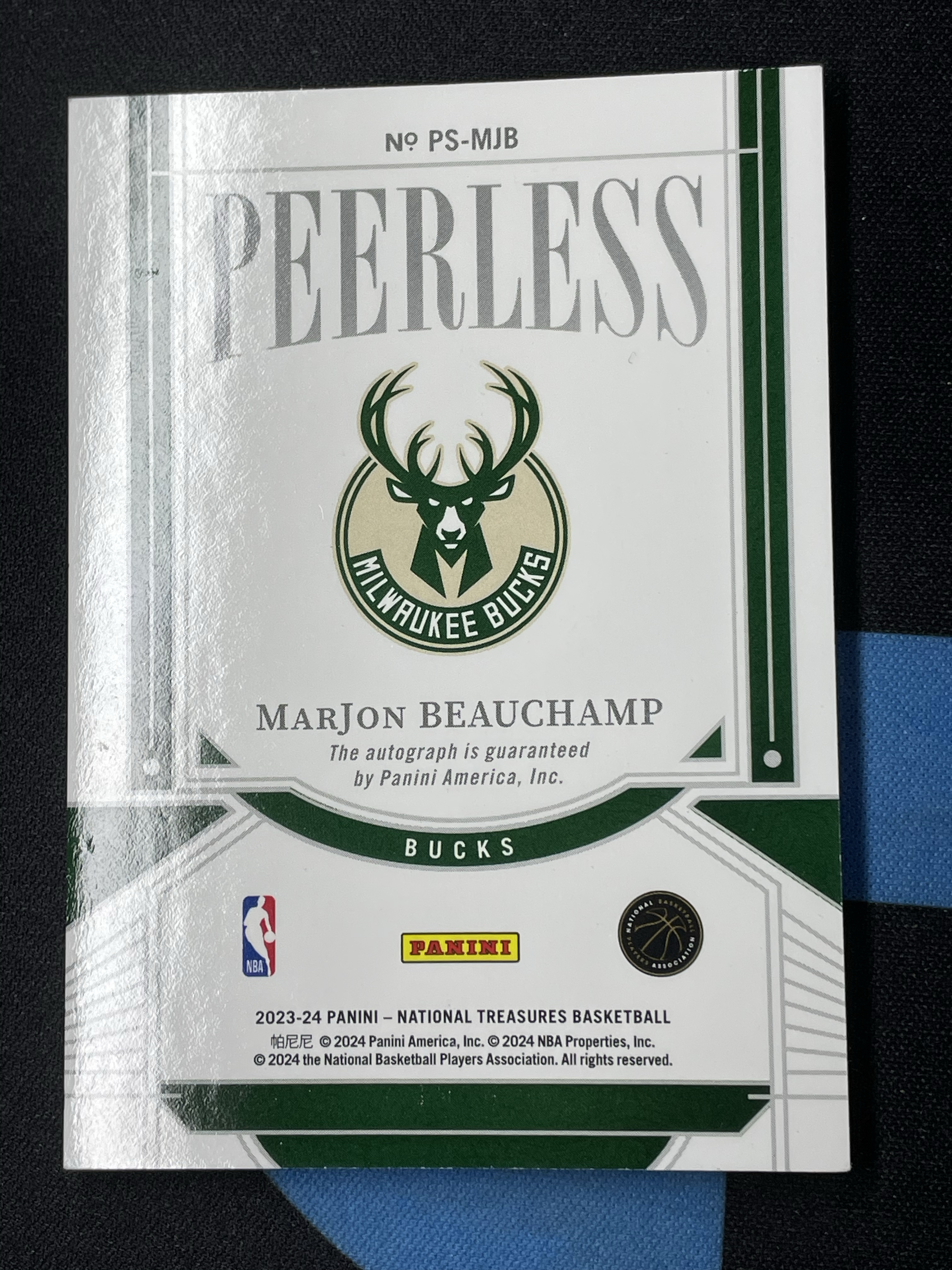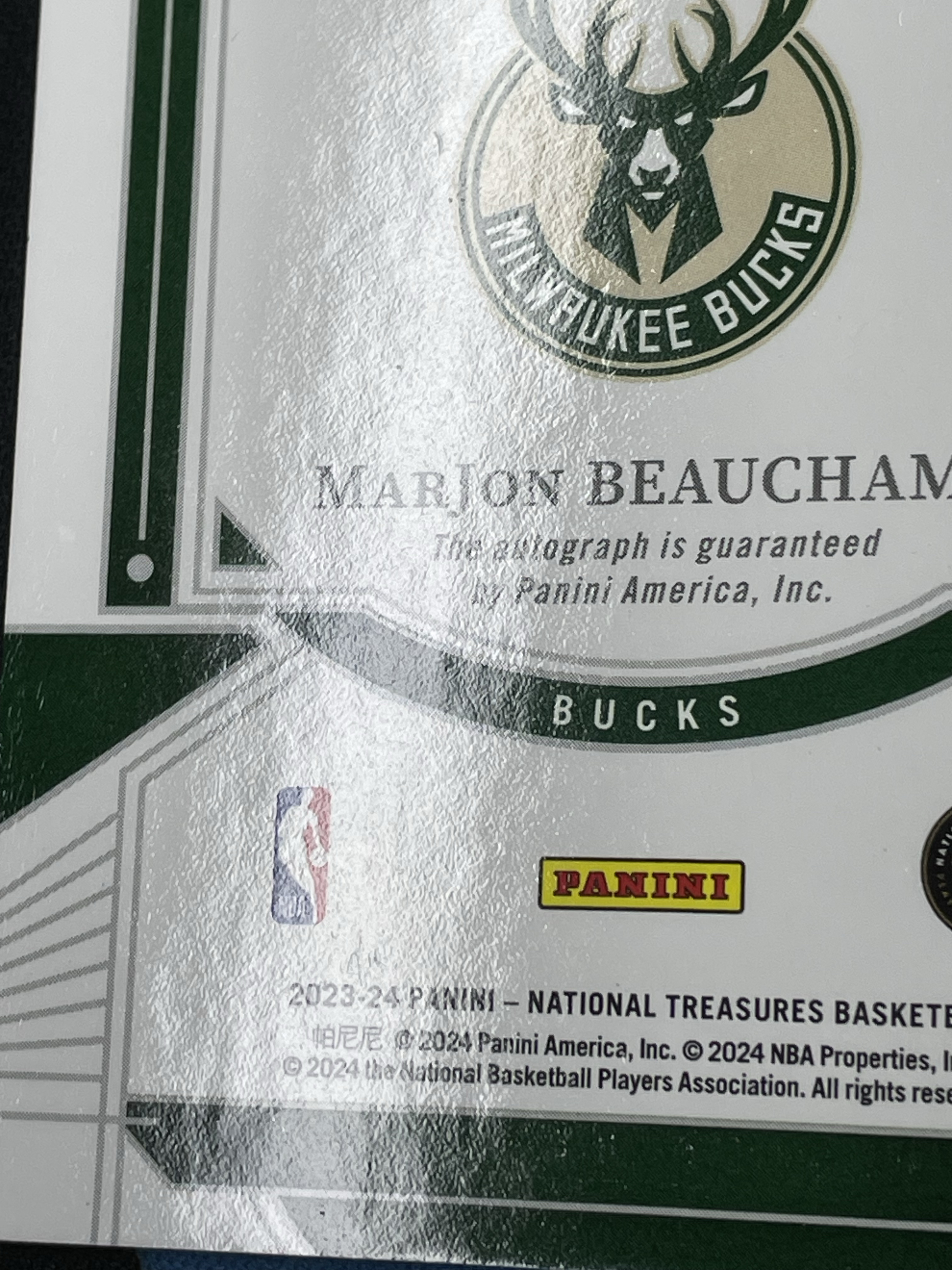2023-24 Panini National Treasures MarJon Beauchamp 【ggball代拍】马乔恩 比彻姆 国宝 49编 签字 卡签 雄鹿 卡品如图 R总