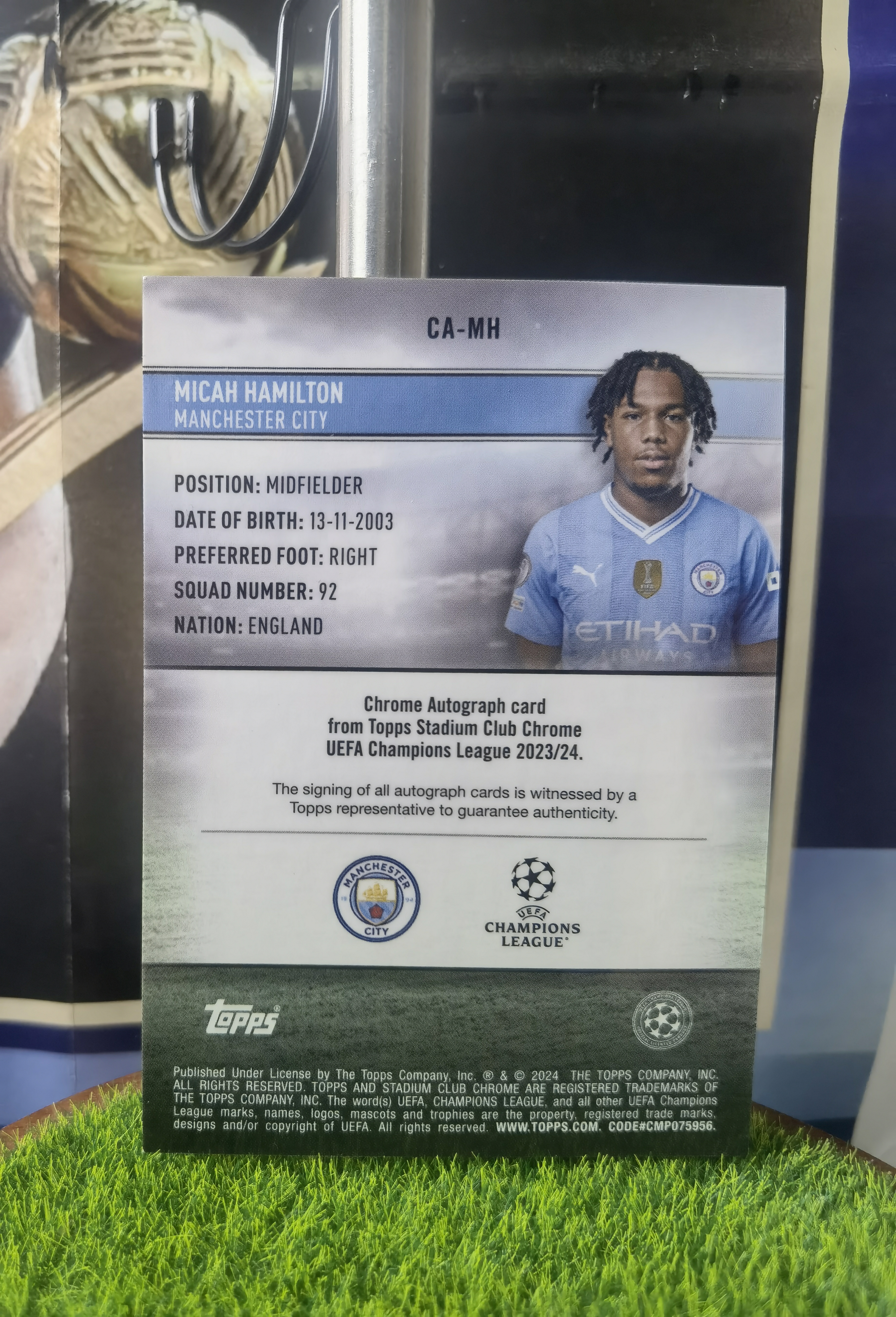 2024 Topps Stadium Club Chrome Micah Hamilton RC 米卡 汉密尔顿 曼城 英格兰 新秀 欧冠 竞技场 签字 贴签 累计三天