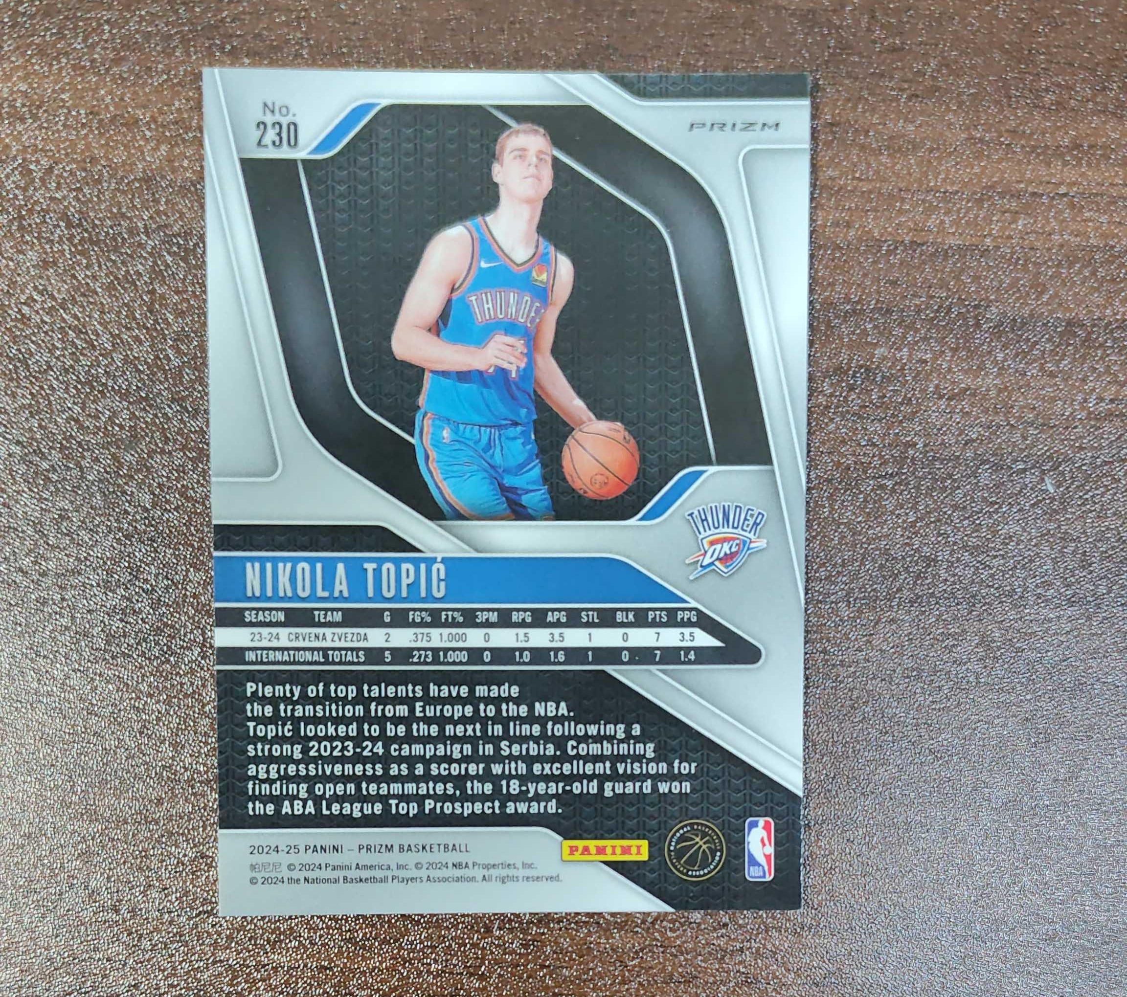 2024-25 Panini Prizm Nikola Topić RC Prizm 尼古拉 托皮奇 RC 新秀 粉碎冰折 雷霆