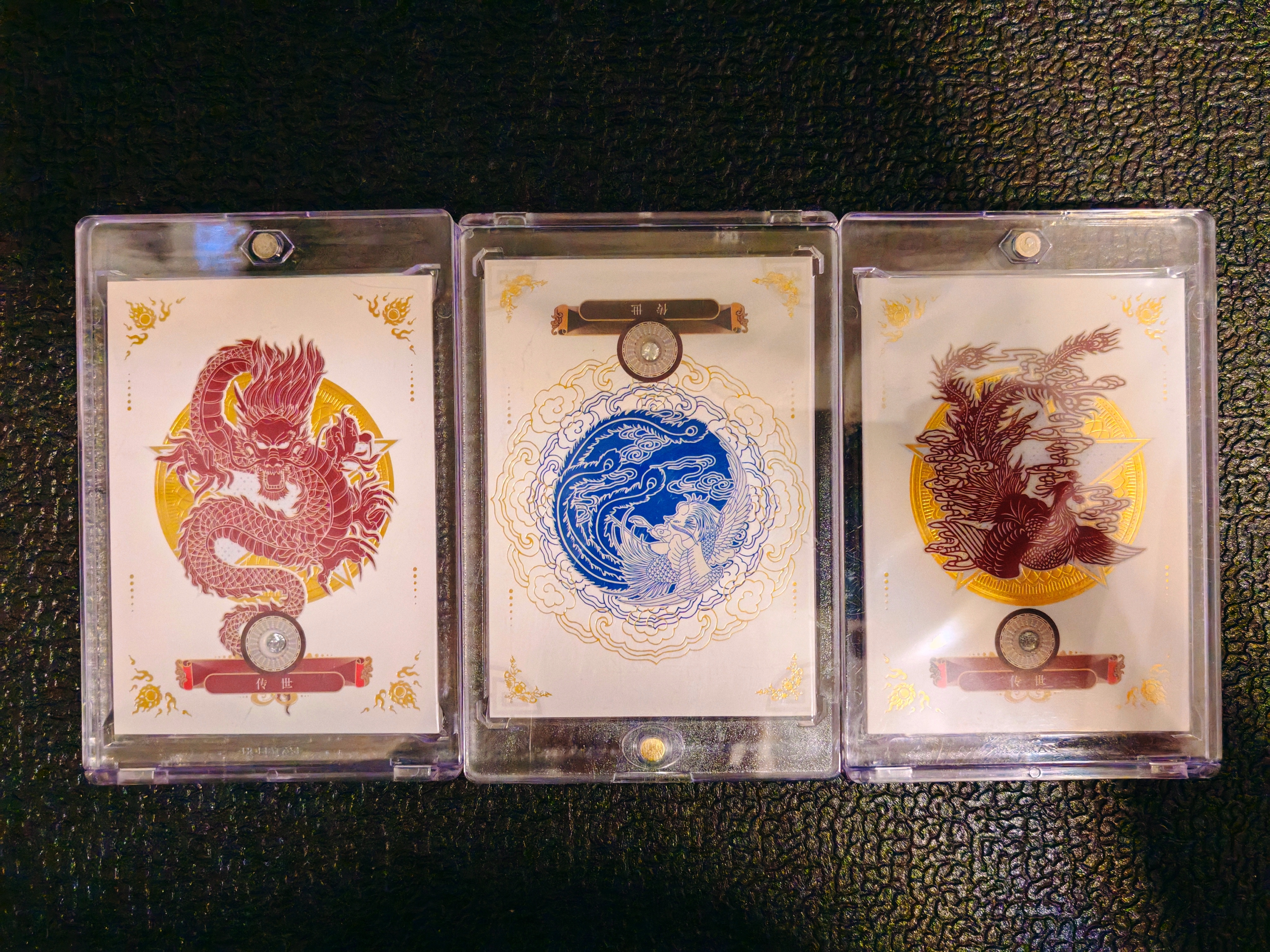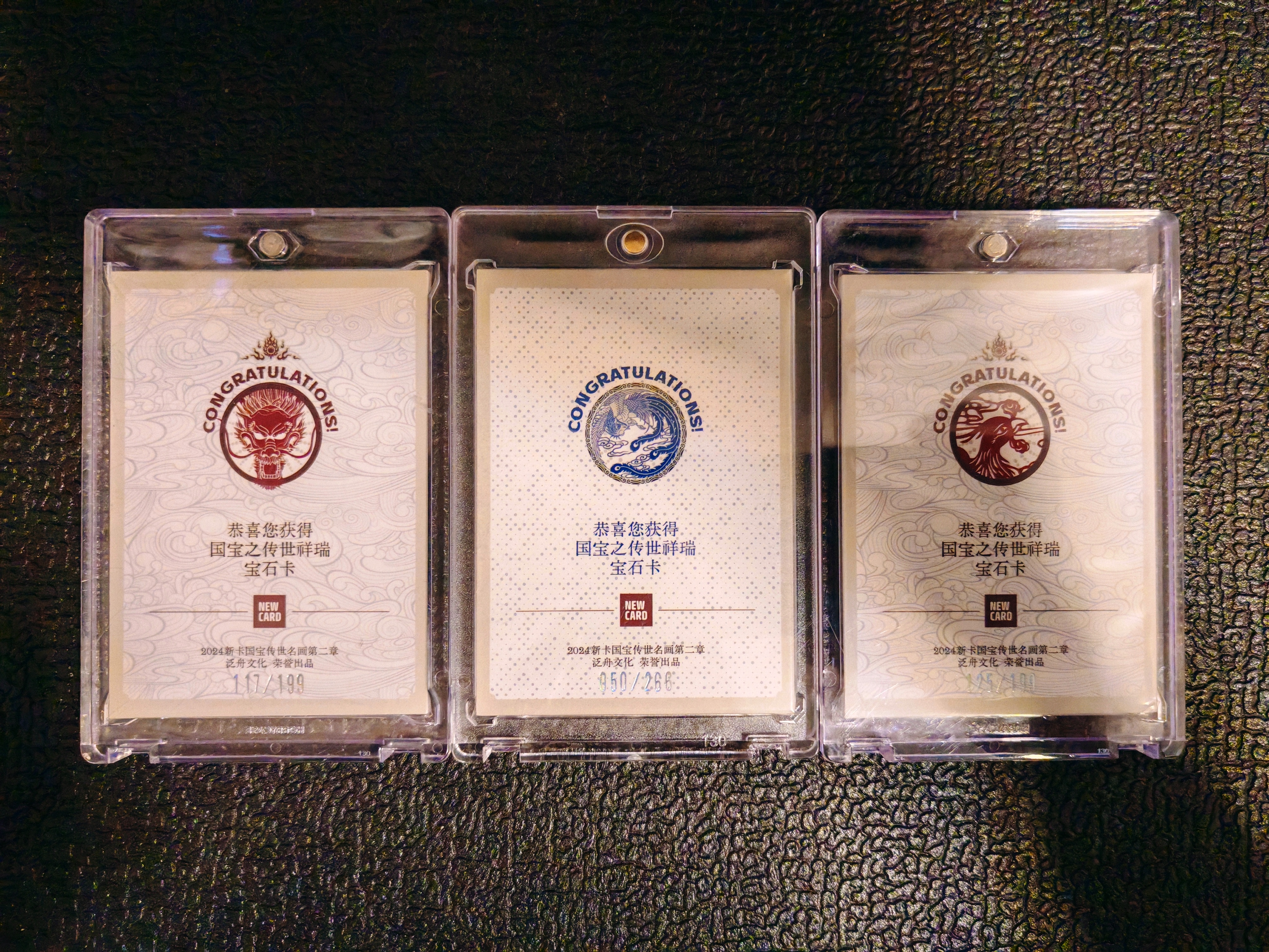 新卡国宝传世名画第二章 泛舟文化 国宝之传世祥瑞龙&凤凰 红宝石 限/199编  凤凰蓝宝石 限/266编实物 卡牌如图 默认官瑕!