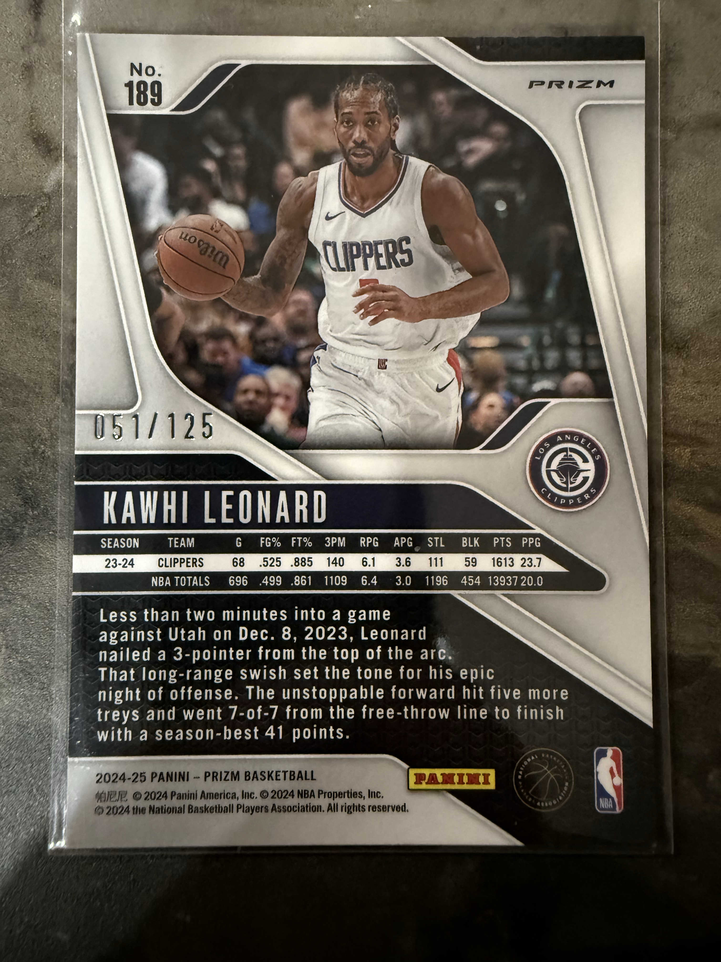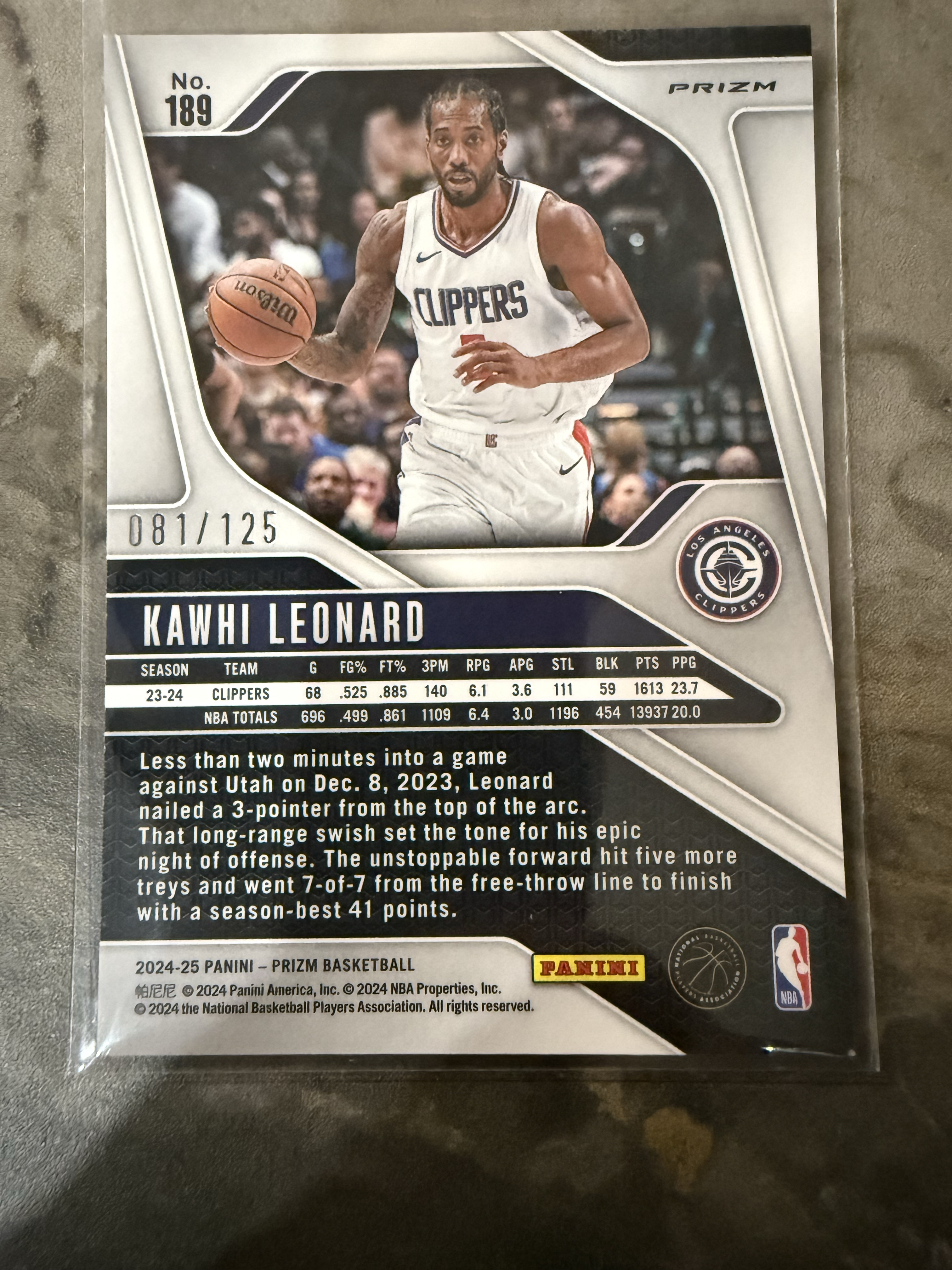 2024-25 Panini Prizm Kawhi Leonard Pz系列 快船 科怀 伦纳德 卡哇伊 莱昂纳德 小卡 蓝波纹折 蓝碎冰折 125编 两张打包 实卡精美 值得收藏