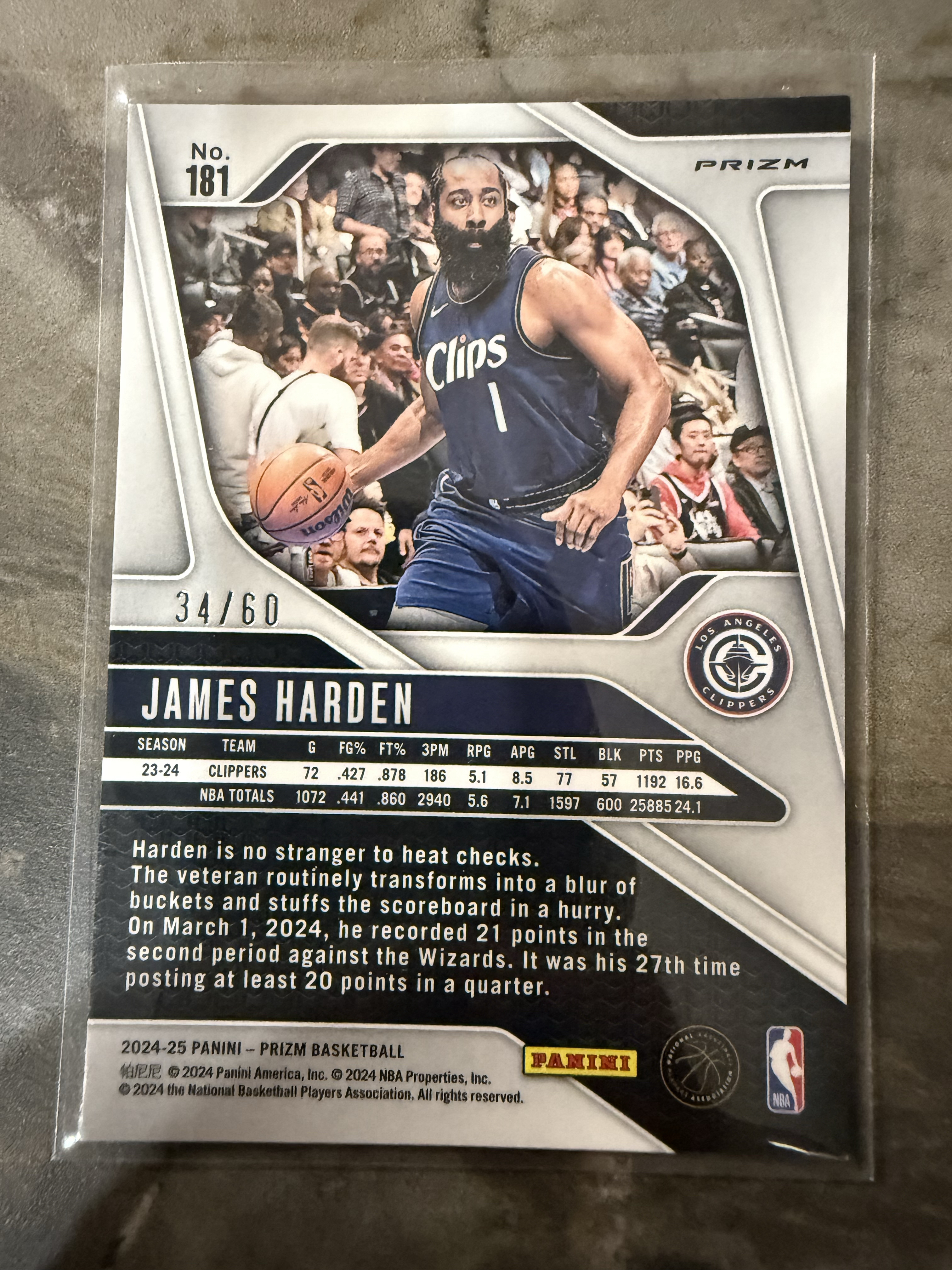 2024-25 Panini Prizm James Harden Pz系列 上镜 快船 詹姆斯 哈登 登哥 大胡子 橙波纹折 60编 两张打包 实卡精美 值得收藏