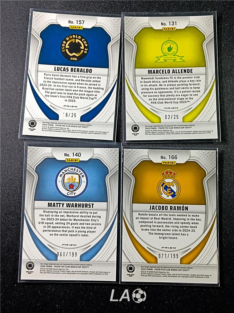 LA足球账号属于LA拍卖专注于足球的子品牌,因卡淘系统不支持跨号合并,所以分开发货计算邮费,寄售代卖咨询:laauction。卡品如图,请仔细看图,如果无图片特殊展示瑕疵均为通行品相,一般prizm optic 等系列薄卡的小划痕,国宝IMM等系列厚卡的小白边小白角,都属于通行品相。艺术家 品控勿扰。中标后请等我们合并订单再点确认付款。付款时卡淘留言说明累计或邮寄(我们会按照留言的先后顺序处理发货,请不要反复留言以免耽误给您回复)为了方便结算和卡片的累计查找,我们只合并当天的订单。邮费-顺丰(默认陆运):北京13元,非偏远外地18元,新疆西藏等偏远只发到付!超重只发到付!1000元以上的订单,建议买家自行保价,或用顺丰到付,所有快递未经保价,运输途中的损坏和丢失请于快递联系解决。(本店不支持任何普快发货,破损及丢失率太高)介意勿拍!中标可累计,累计时间2个月,每标累计金额不能超过500元,超过累计时间出现丢失或品相问题的,卡片问题由买家自行承担。累计的卡片请先付清卡款,然后卡淘上与我们联系操作,请于截标后3天转好,截标后3天未确认收到付款,一律卡淘投诉处理。