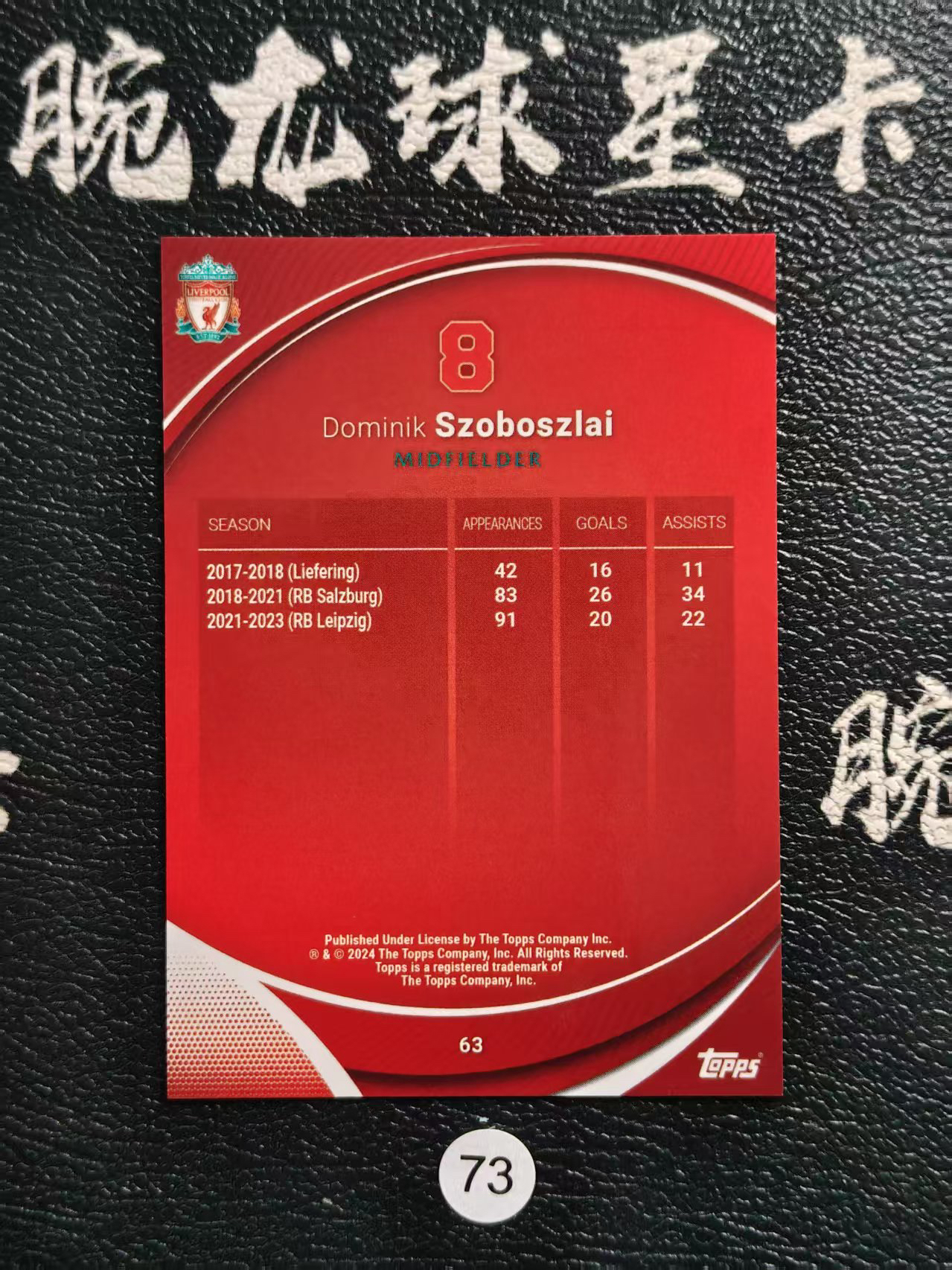 2024 【腕龙拍卖 接代卖】 腕龙Tracy车AQ2 Topps Chrome 利物浦队盒 TC 索博斯洛伊 匈牙利 黑白波纹折 Dominik Szoboszlai 卡品如图 收藏必备