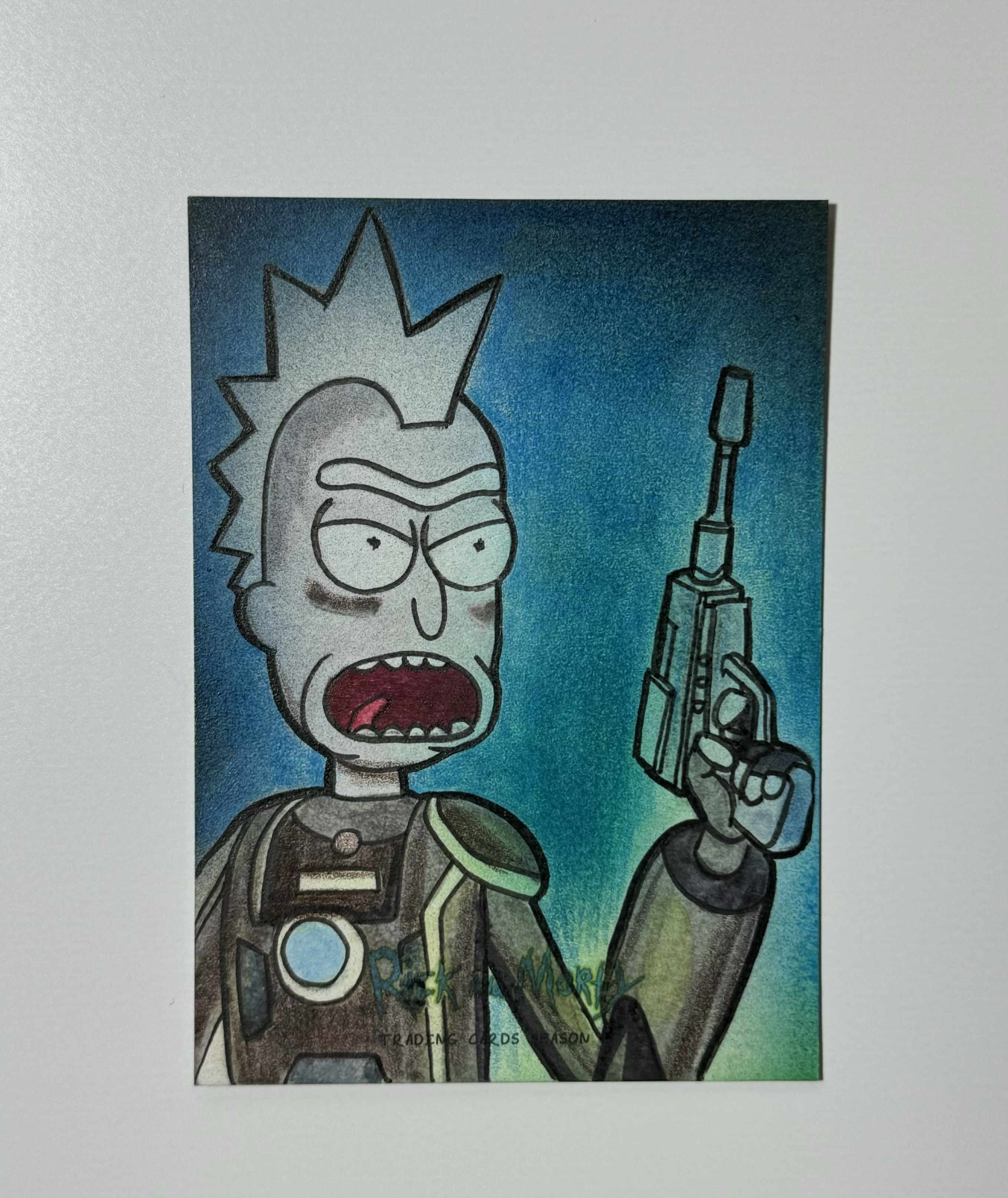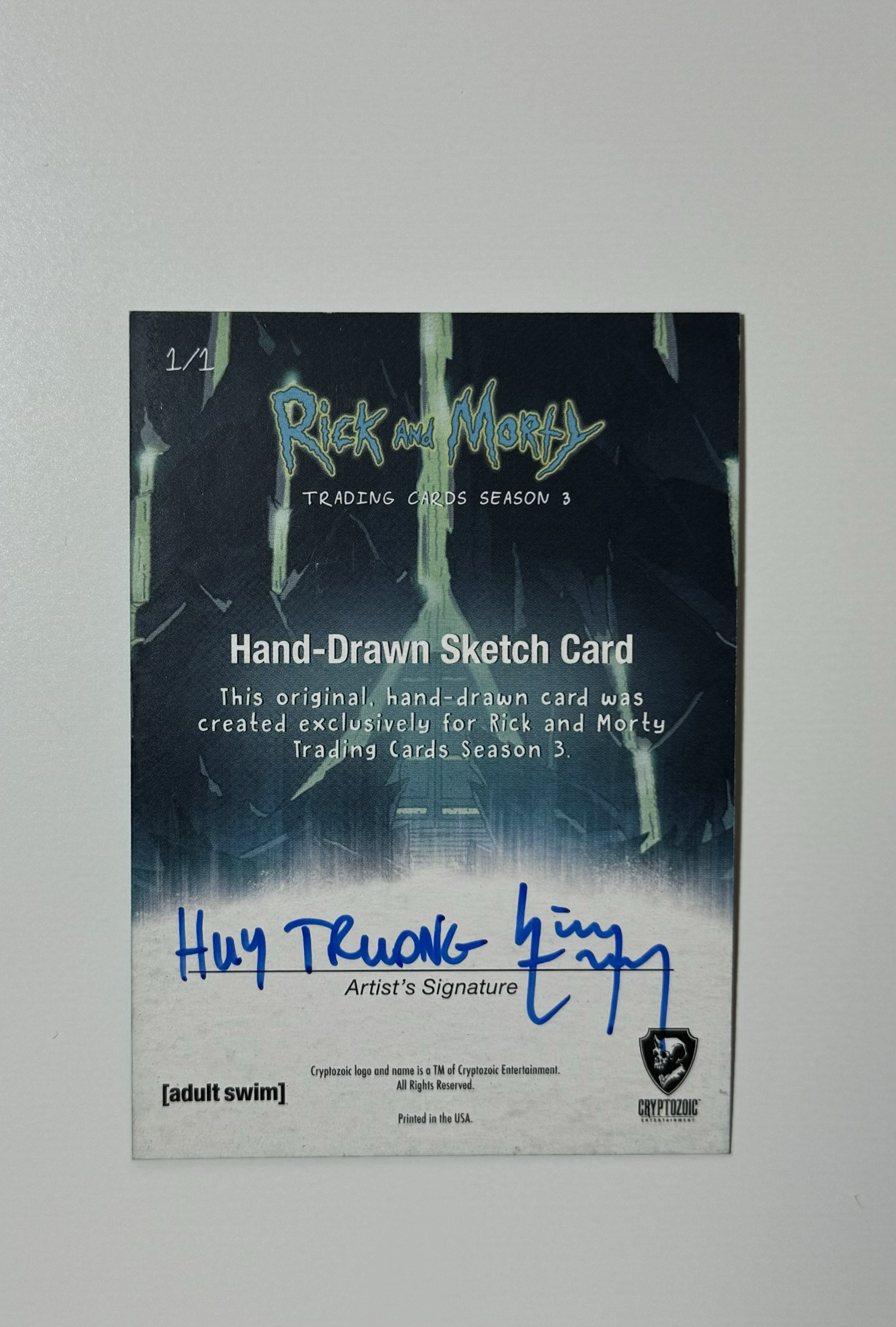 2019 Rick and Morty Cryptozoic 瑞克和莫蒂第三季 官卡 手绘 寒武纪 手绘 Sketch 1/1 1编1 大比例 卡签 绝版 A级画师Huy 画师签字