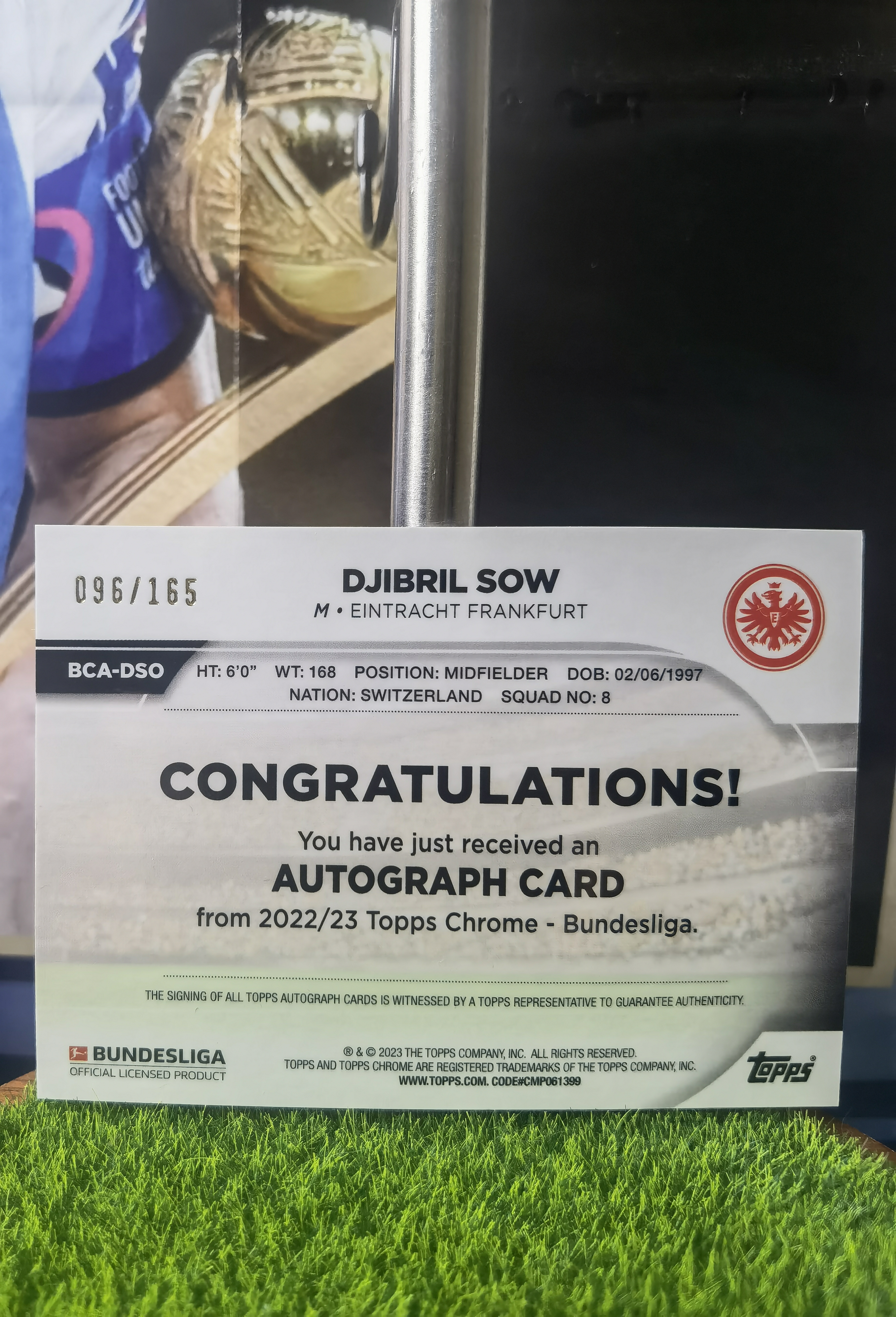 2023 Topps Chrome Djibril Sow 贾布里勒 索乌 096/165编 签字 TC德甲 折射 法兰克福 塞维利亚 瑞士 累计三天