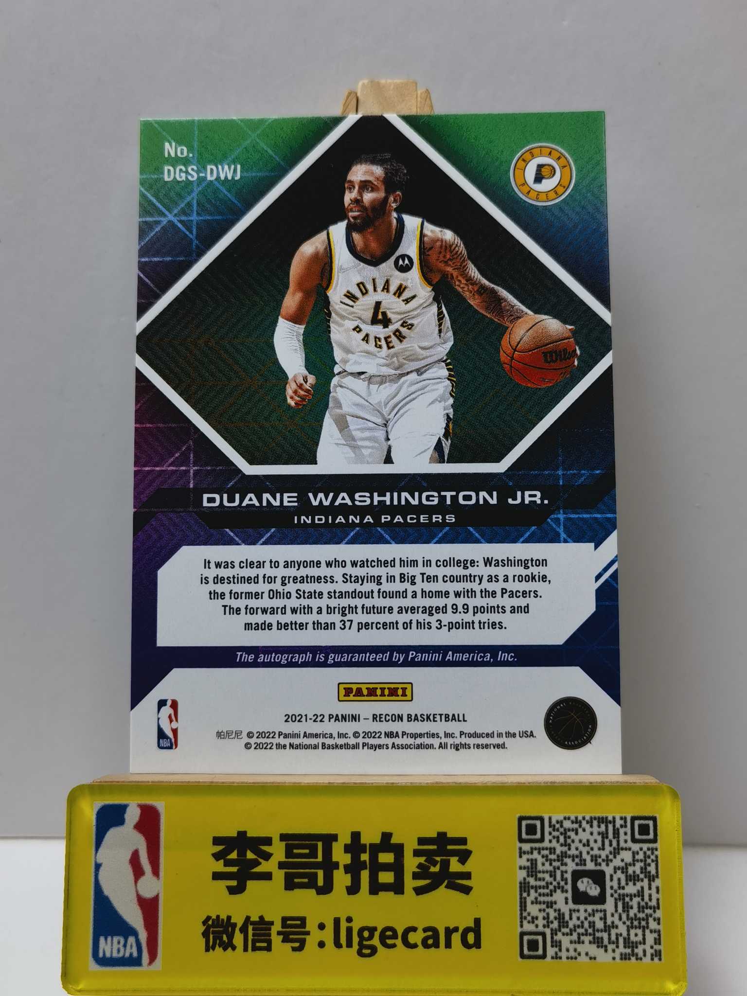 2021-22 Panini Recon Duane Washington Jr. 【李哥代卖】杜安小华盛顿 签字 RC新秀 银折 步行者 Guo1127