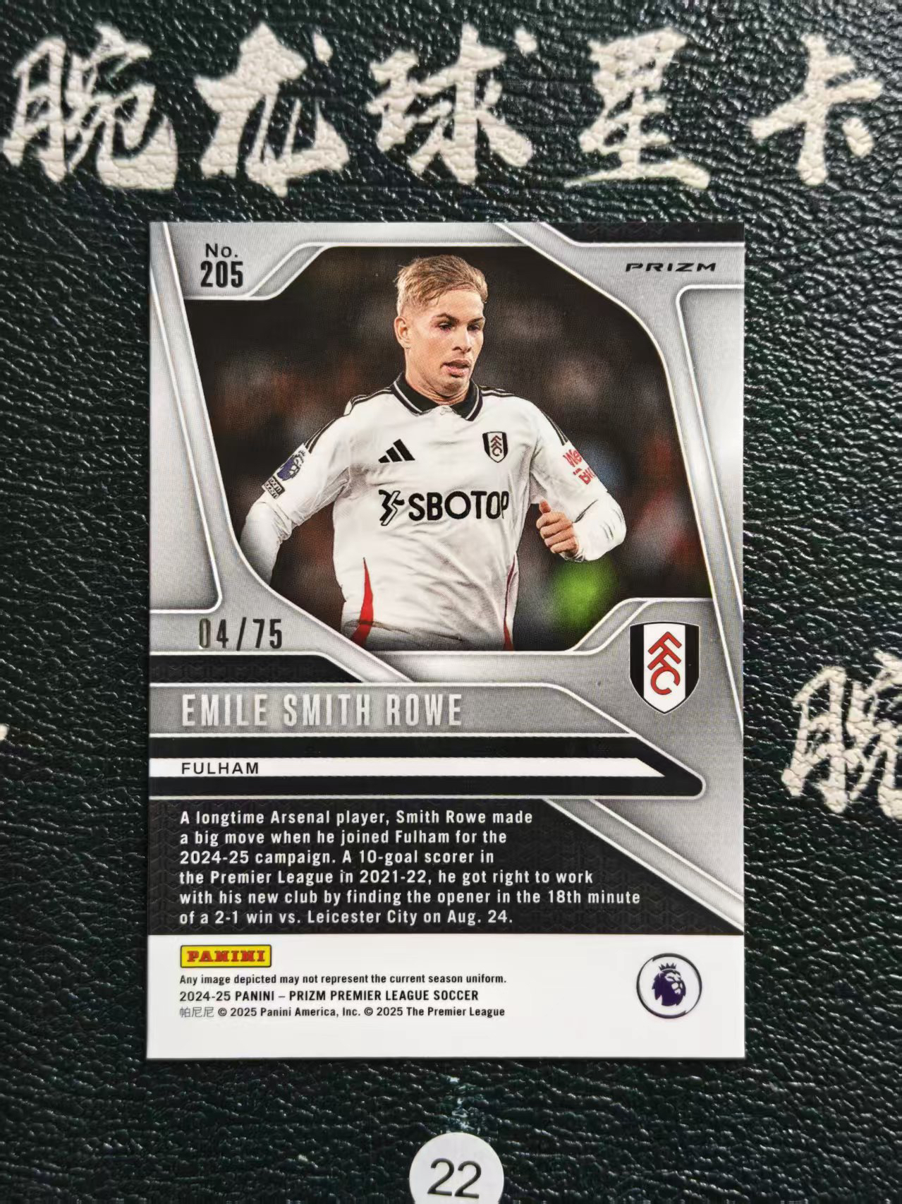 2024-25 【腕龙拍卖 接代卖】 腕龙蛋壳AS6 Panini Prizm 英超 PZ 史密斯 罗 富勒姆 蓝碎冰折 4/75编 EMILE SMITH ROWE 卡品如图 收藏必备
