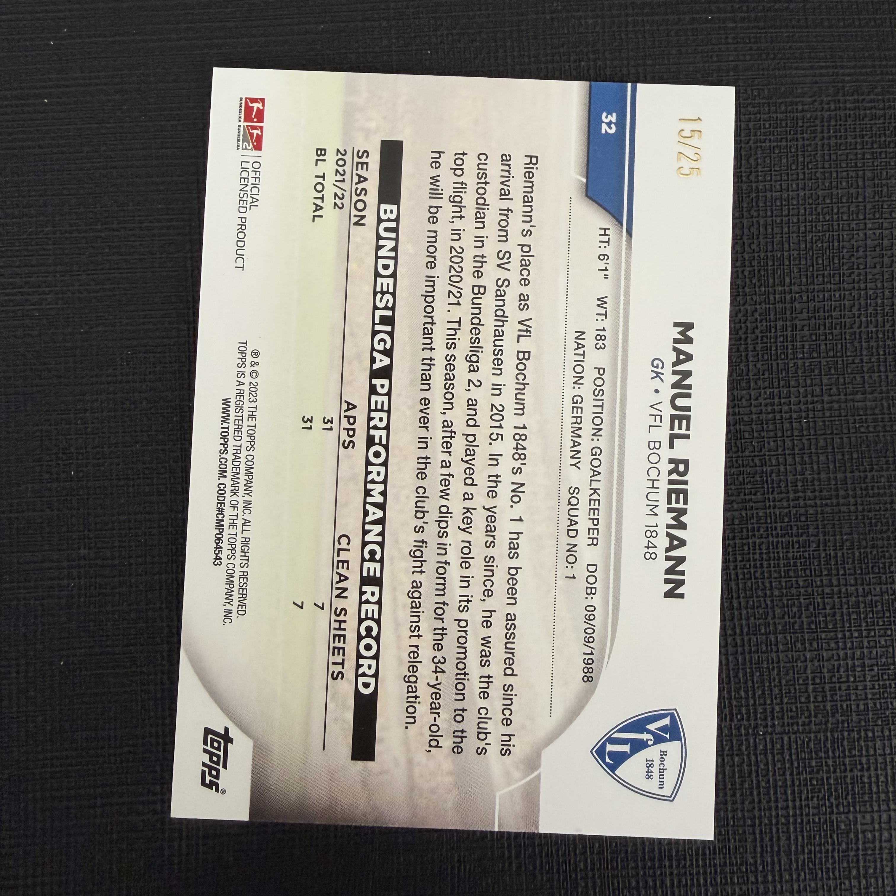 2022-23 Topps Bundesliga Manuel Riemann 德甲 碧玉 曼努埃尔 里曼 波鸿 /25编 橙折 低编 【默认微瑕一日一快递 不累计 不发到付】卡uu