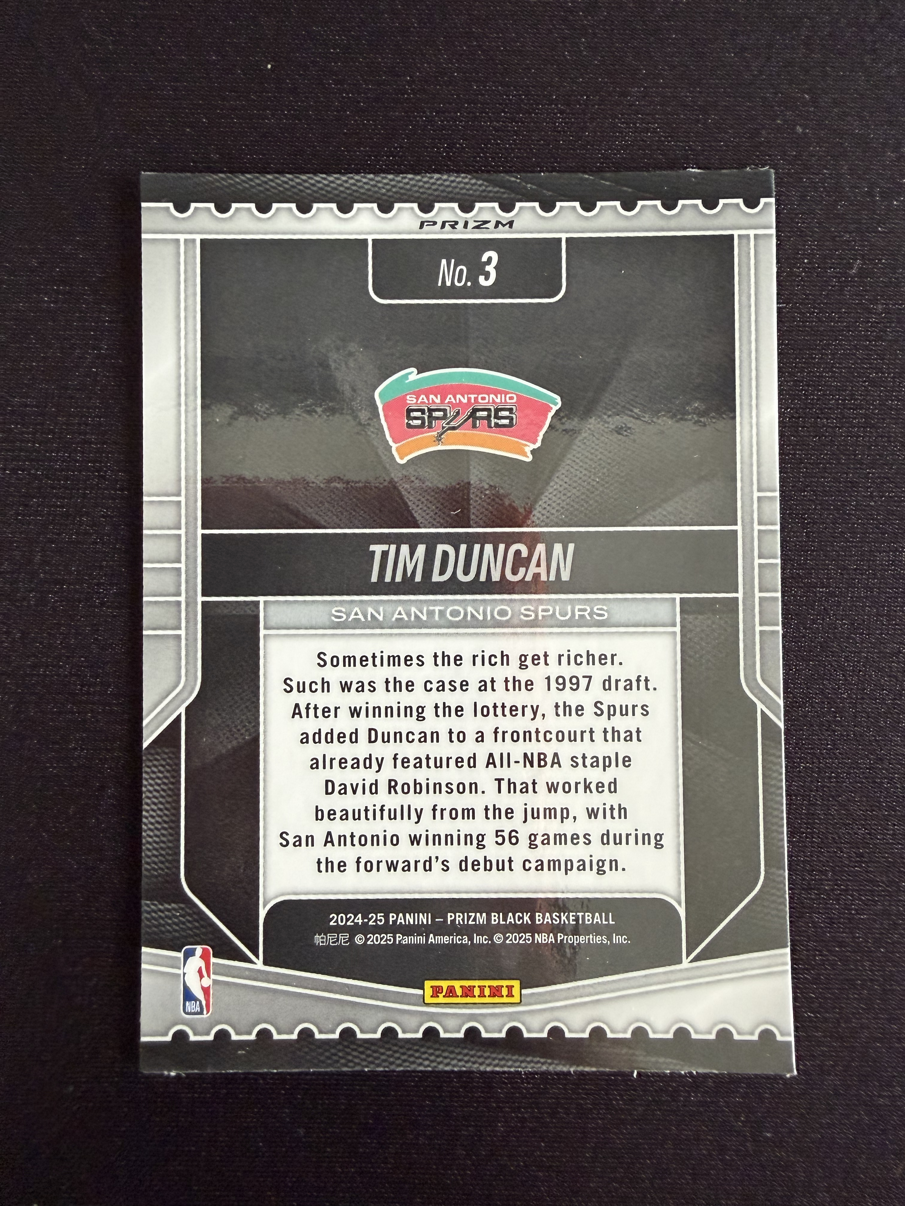 2024-25 Panini Prizm Black Tim Duncan 篮球PZ Black 蒂姆 邓肯 石佛 历史第一大前锋 状元秀 选秀夜特卡 正银折