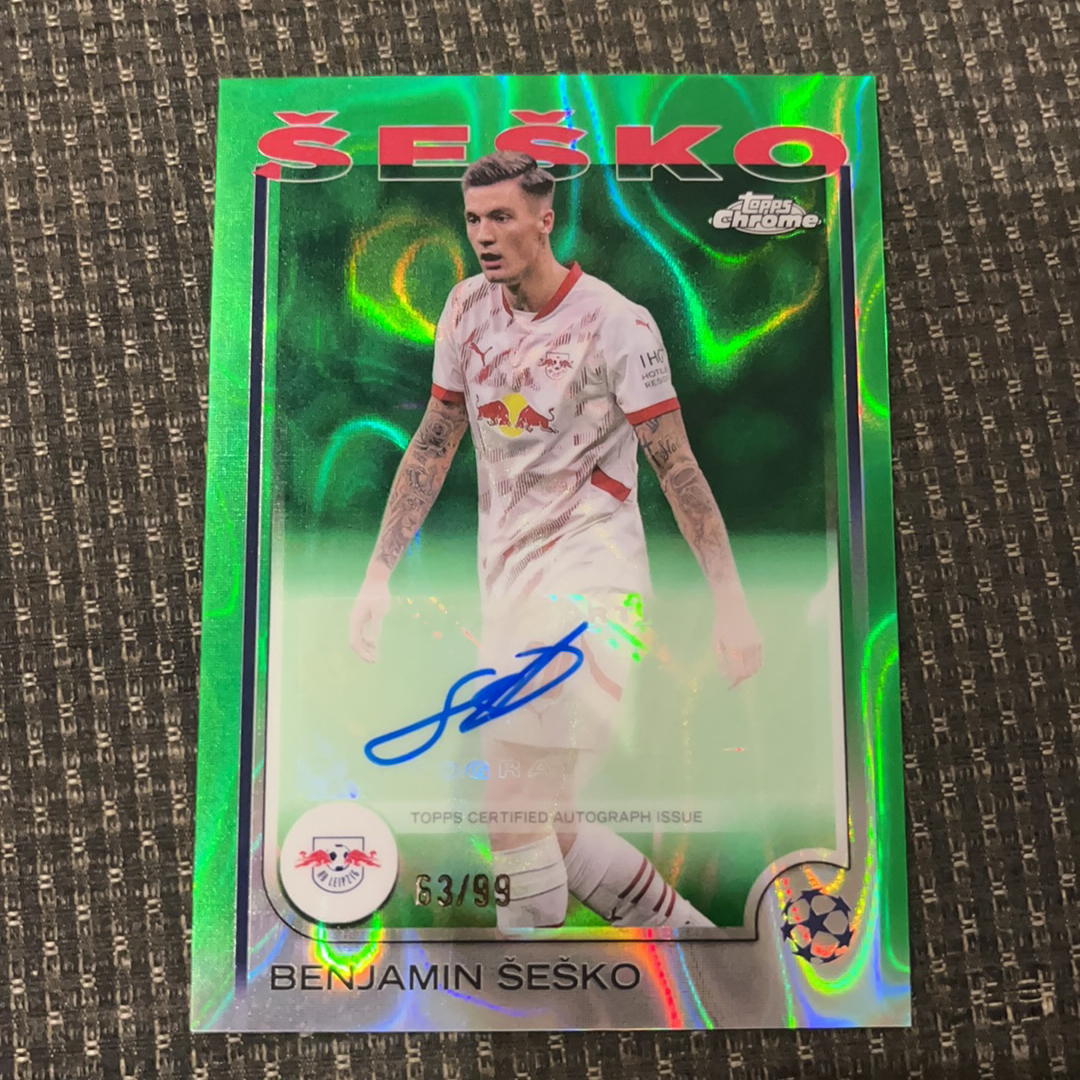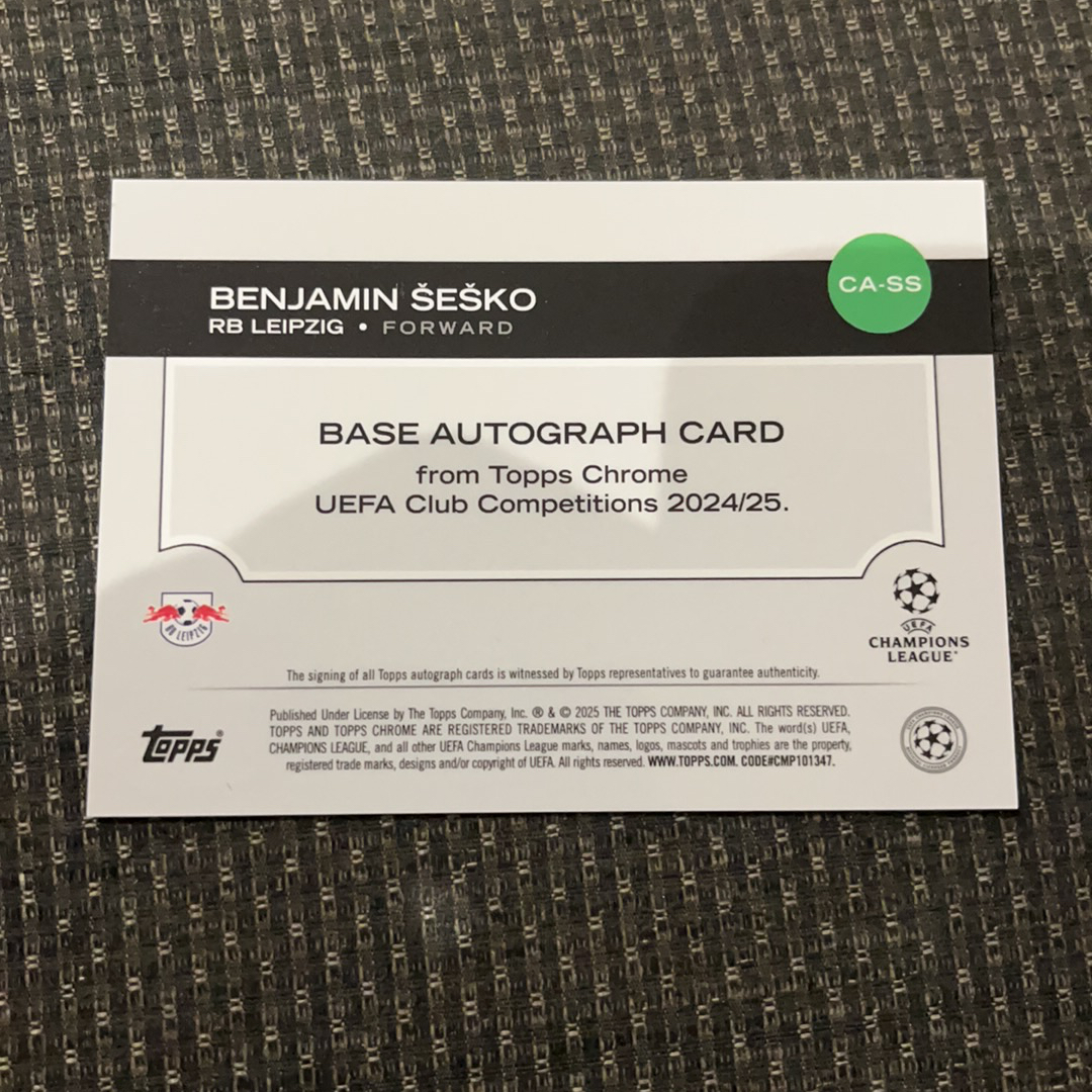 2024-25 Topps Chrome Benjamin Sesko 赛斯科 谢什科 欧冠tc 完美签字 99编 绿熔岩折 曼联锋霸 斯洛文尼亚🇸🇮神锋 值得收藏 未来大涨 B费 库尼亚 86