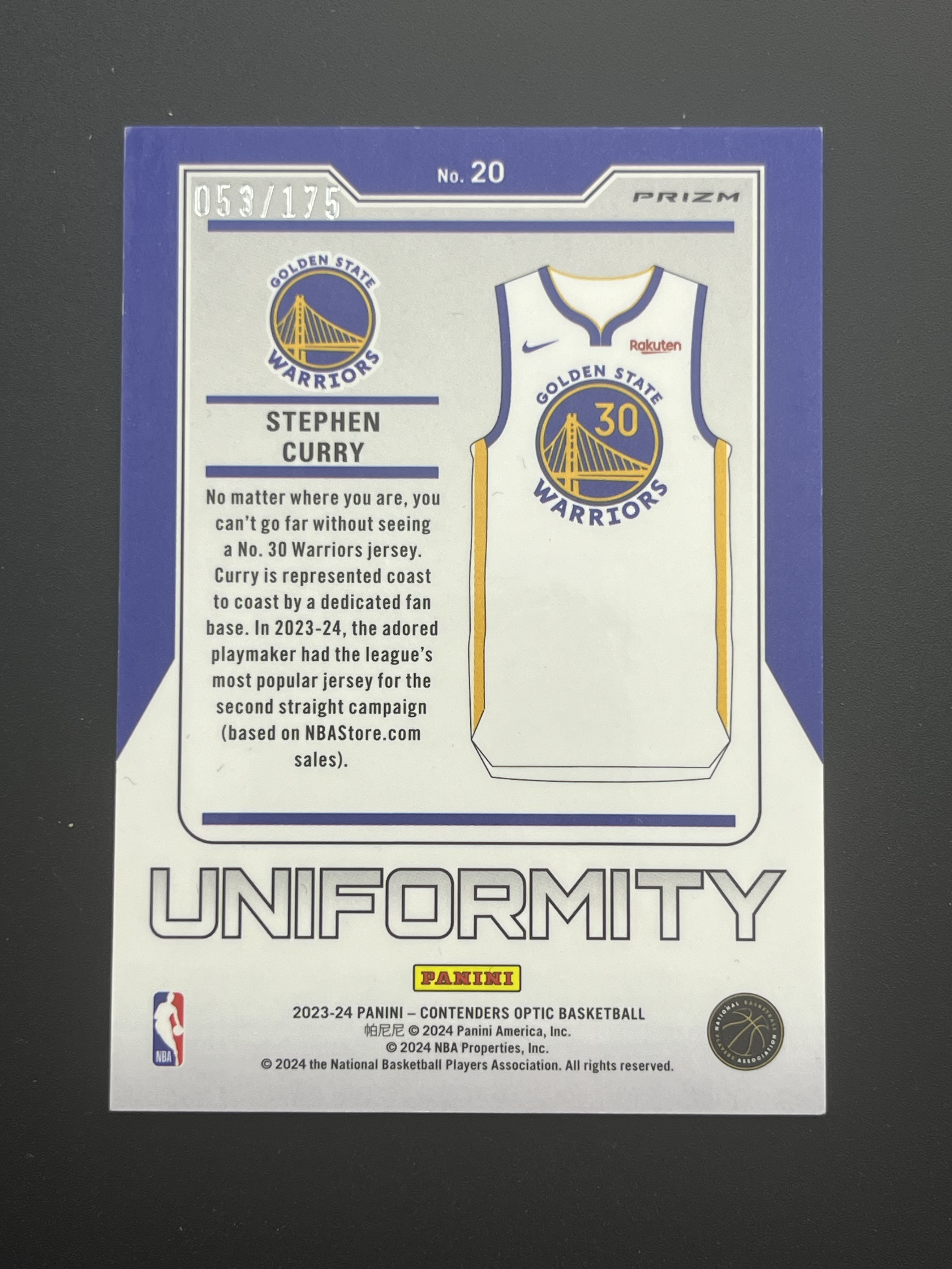 2023-24 Panini 球票optic Stephen Curry 勇士 斯蒂芬 库里 175编 红碎冰折 折射 球衣 小背心 特卡 专收必备 卡品如图
